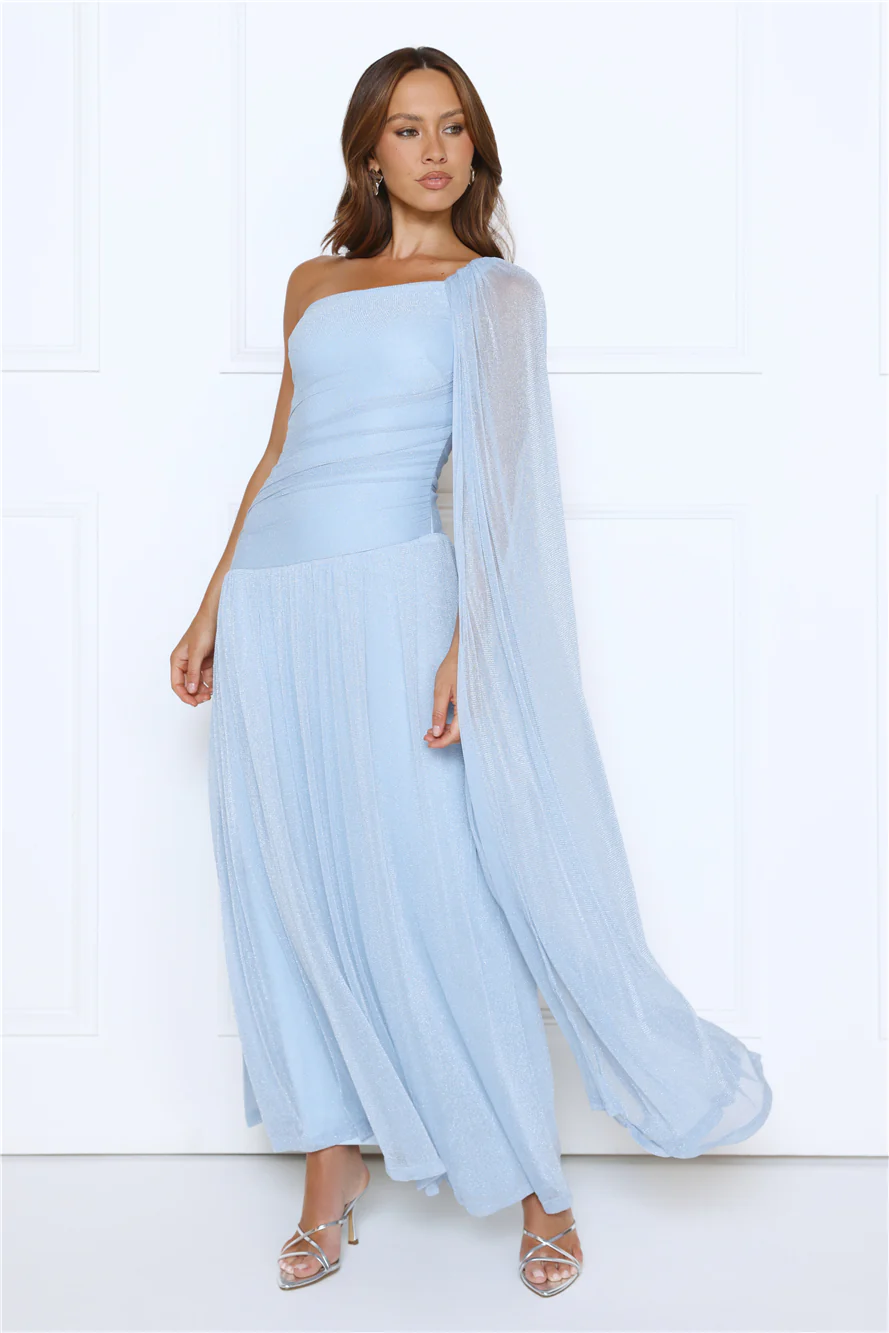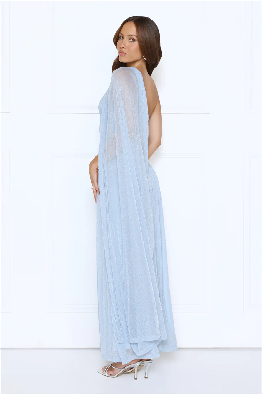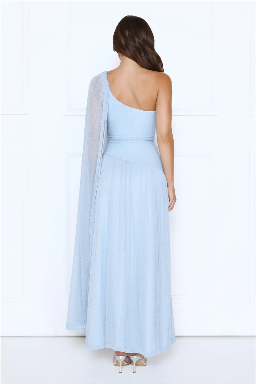 Midnight Spin One Shoulder Maxi Dress Blue