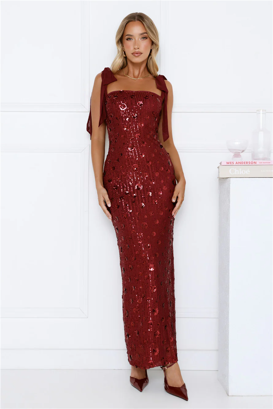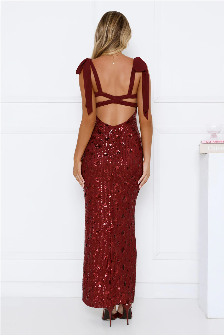 Bright Stars Sequin Maxi Dress Burgundy