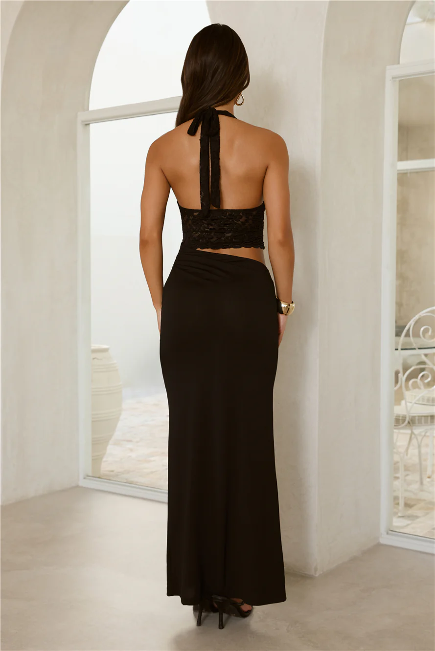 Thinking Smart Halter Lace Maxi Dress Black