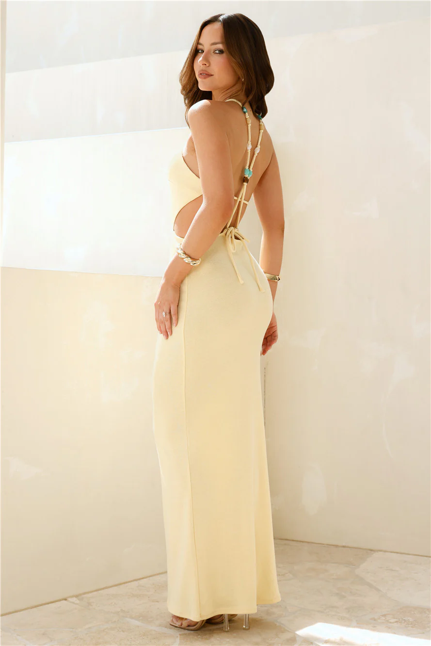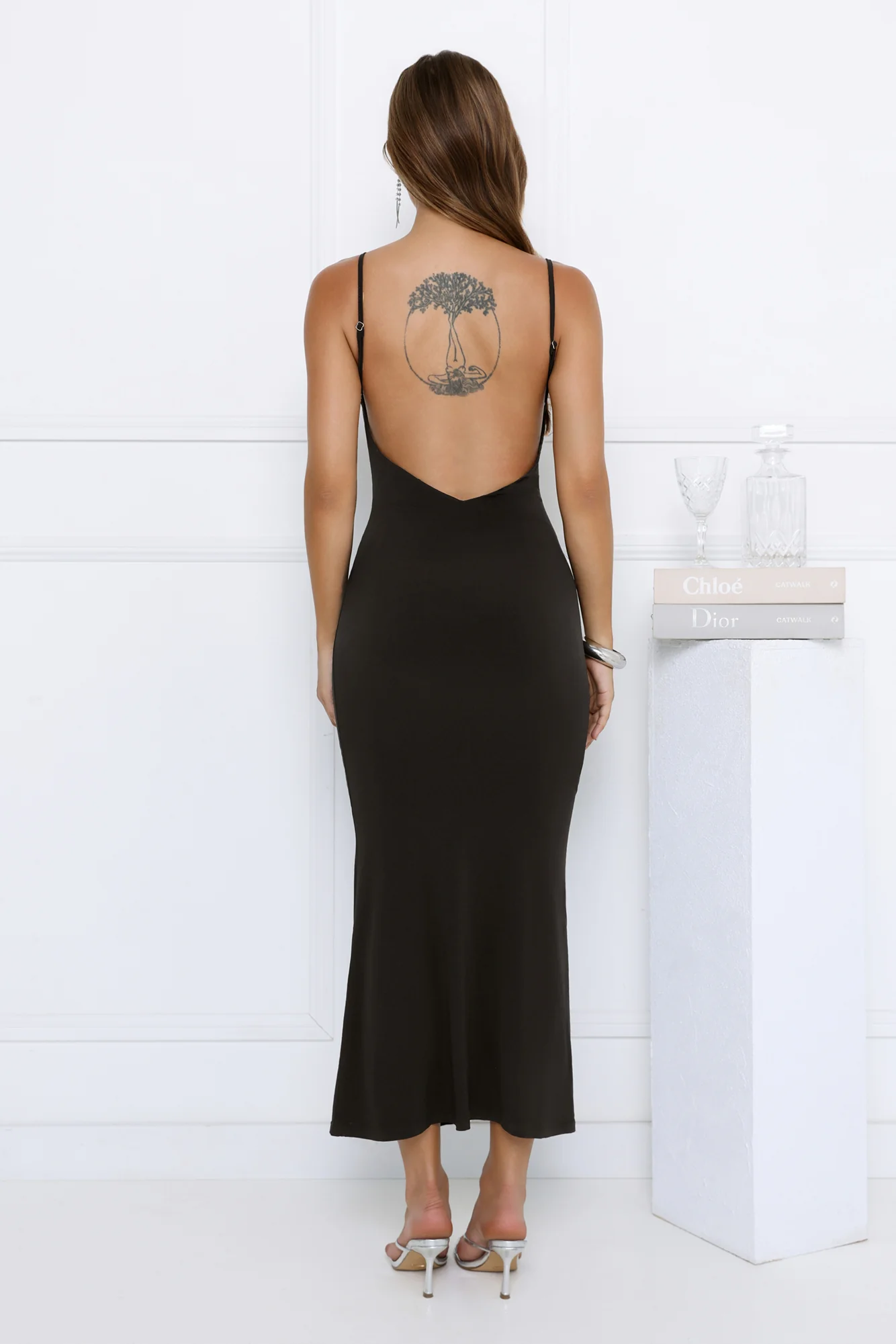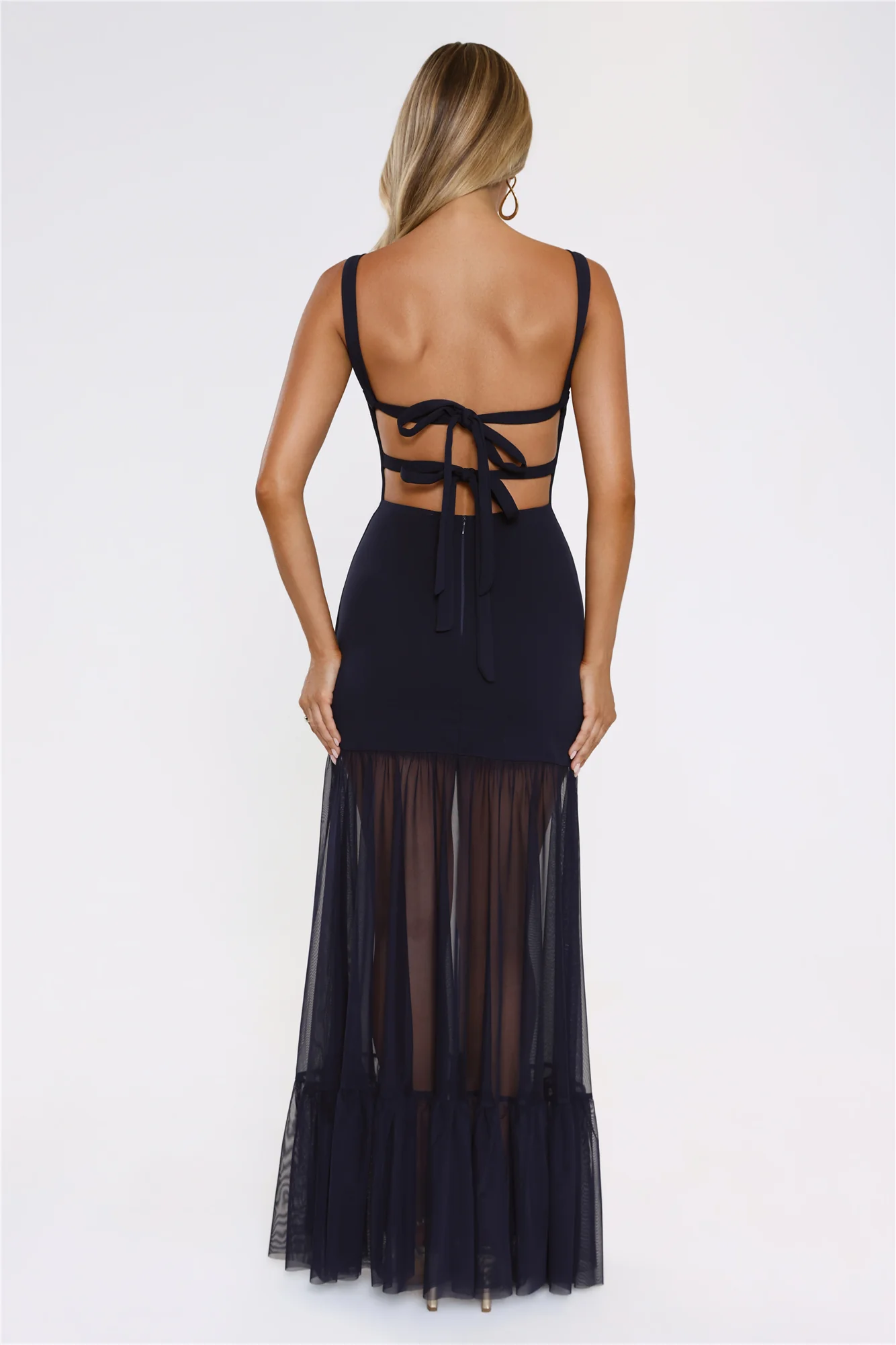 Sultry Mesh Tie Back Cutout Maxi Dress Navy