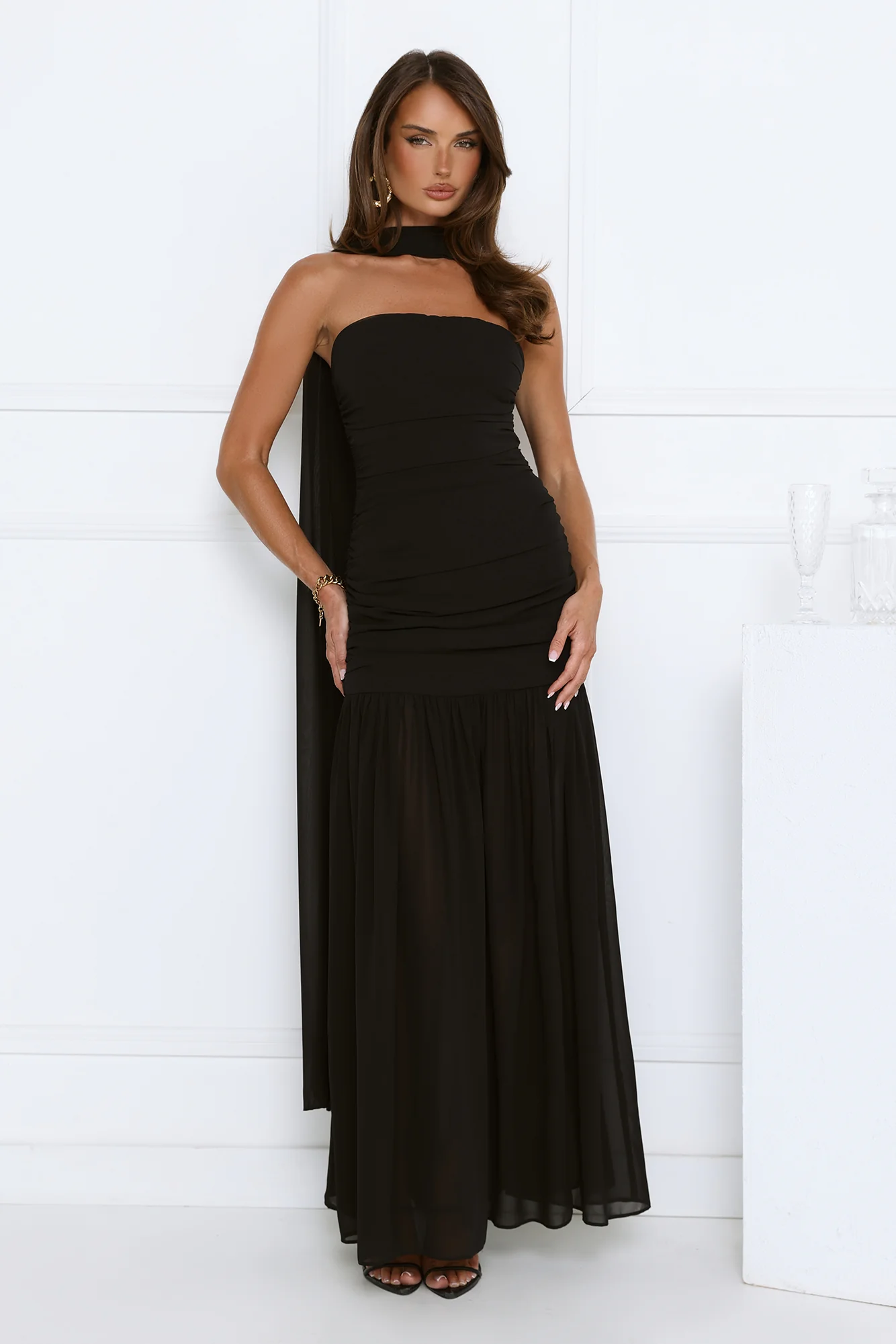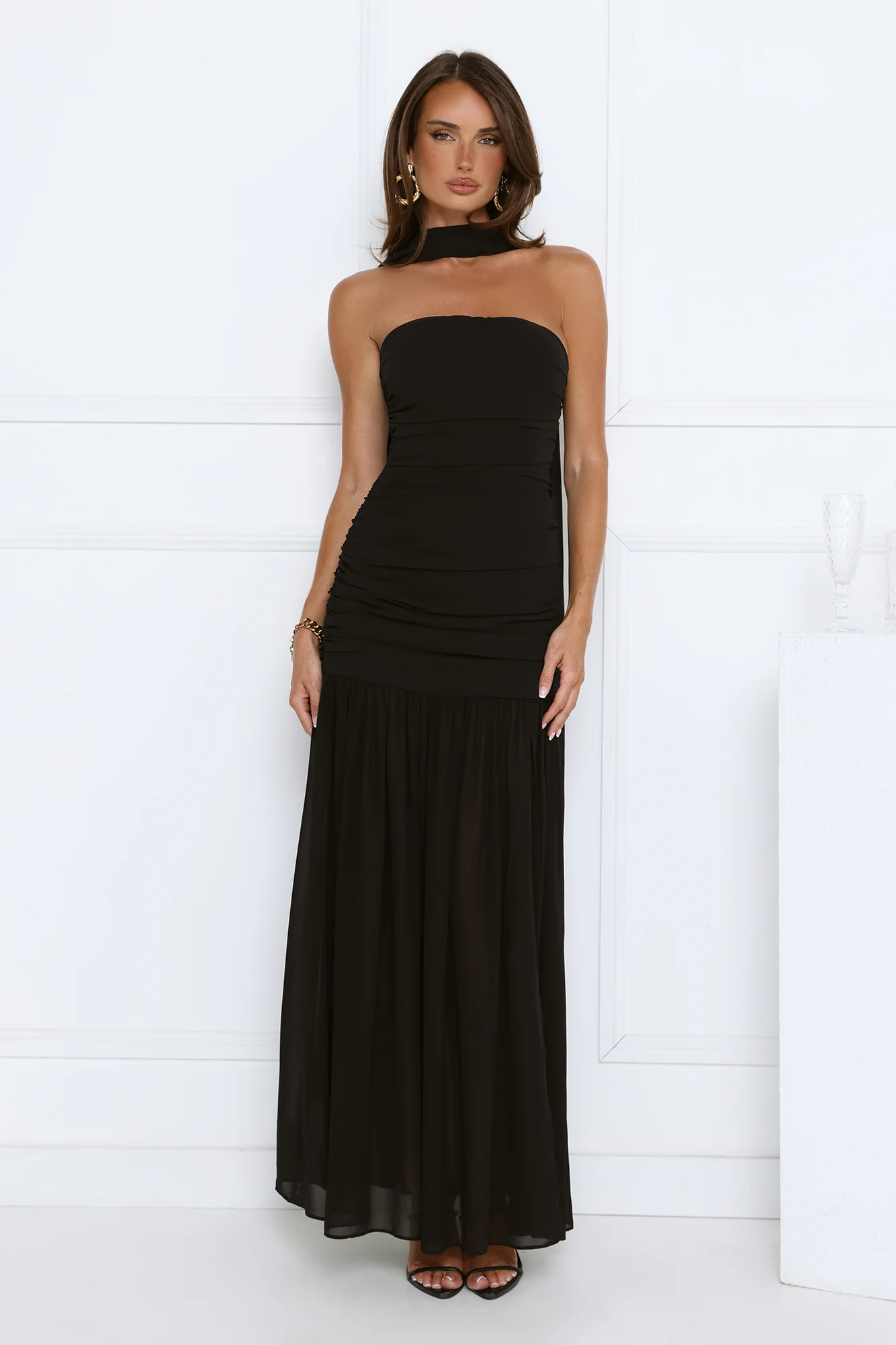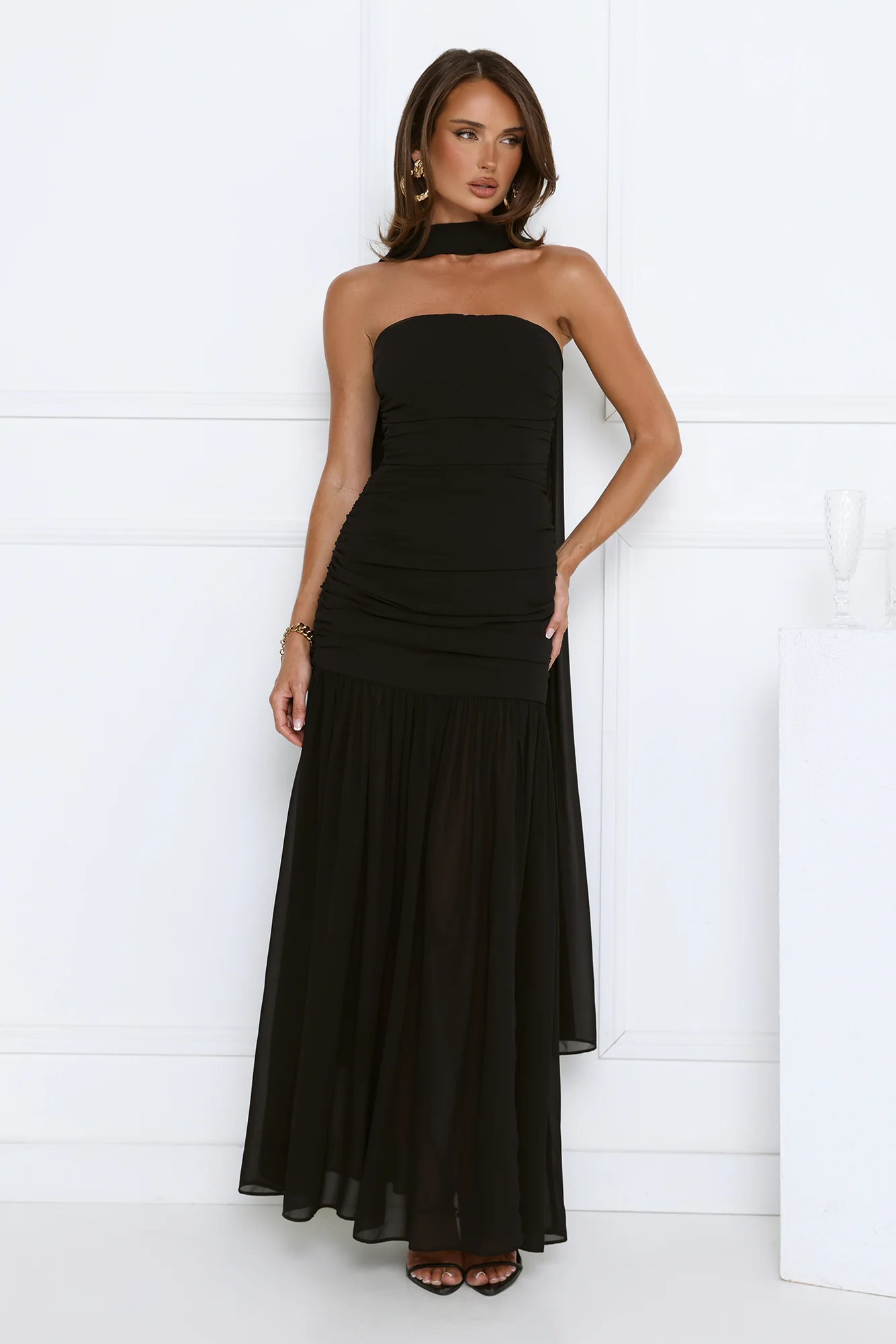 Soirée Glow Strapless Maxi Dress Black
