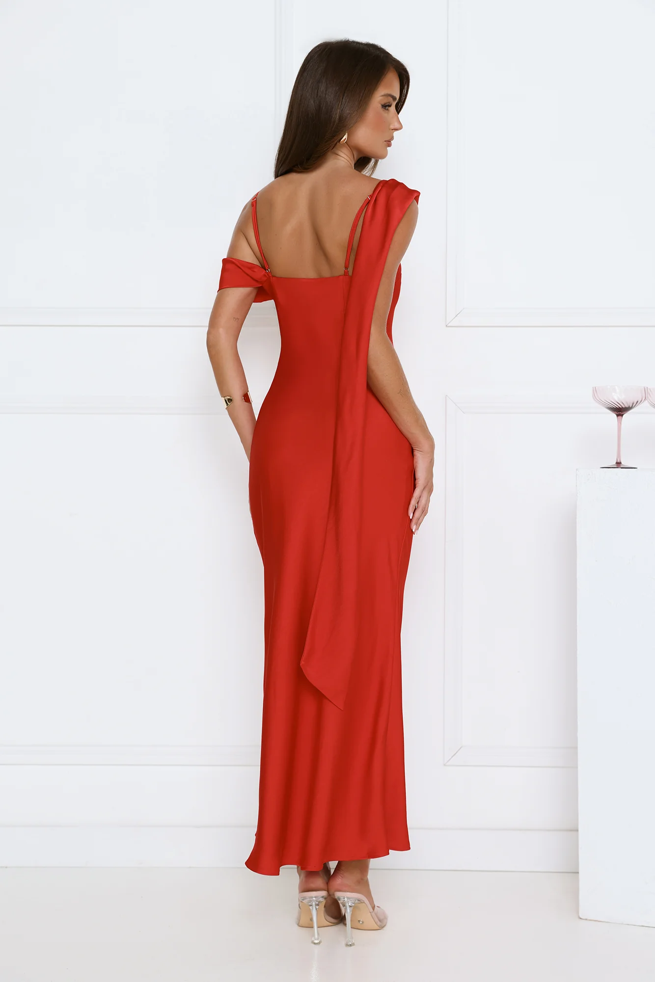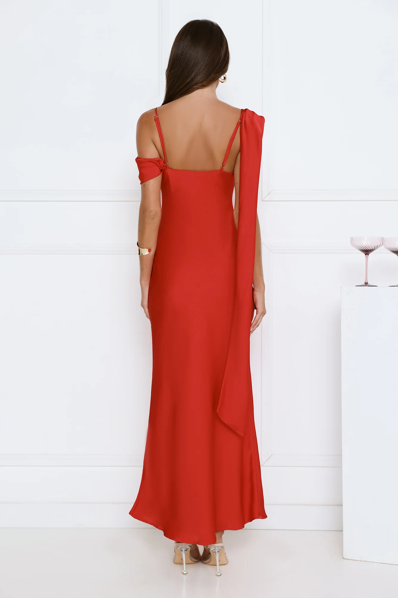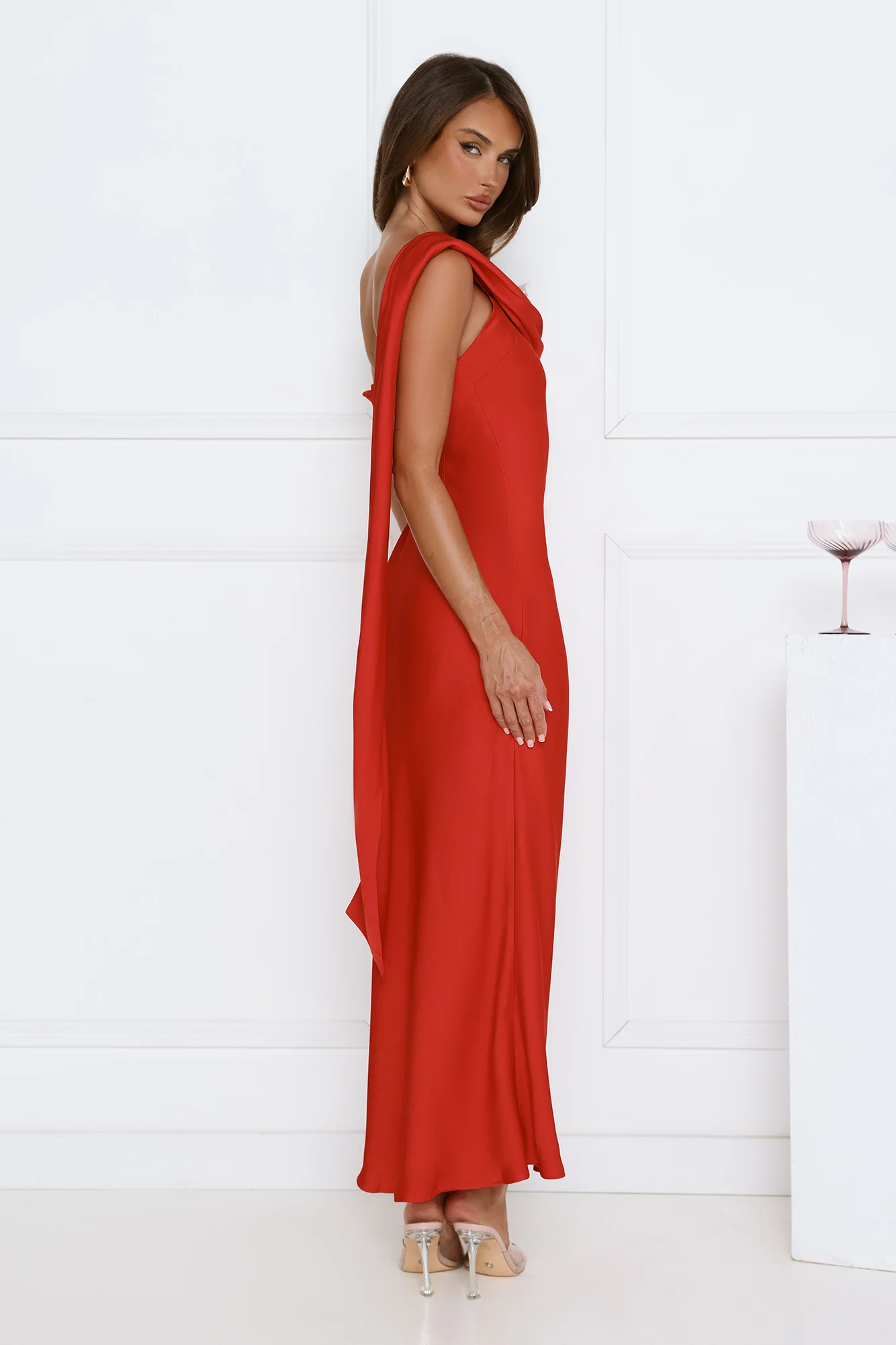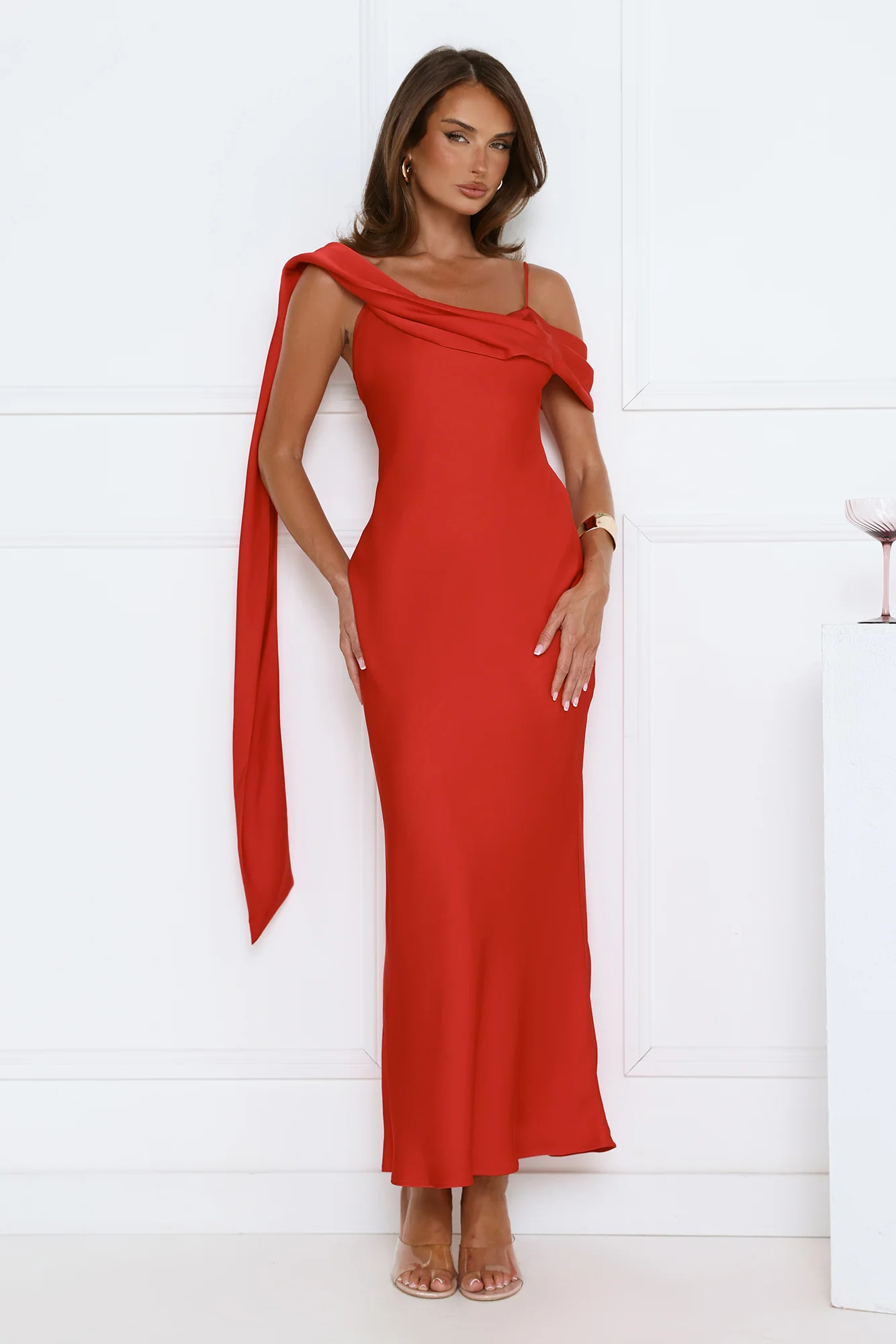 Whispered Flame Satin Maxi Dress Red