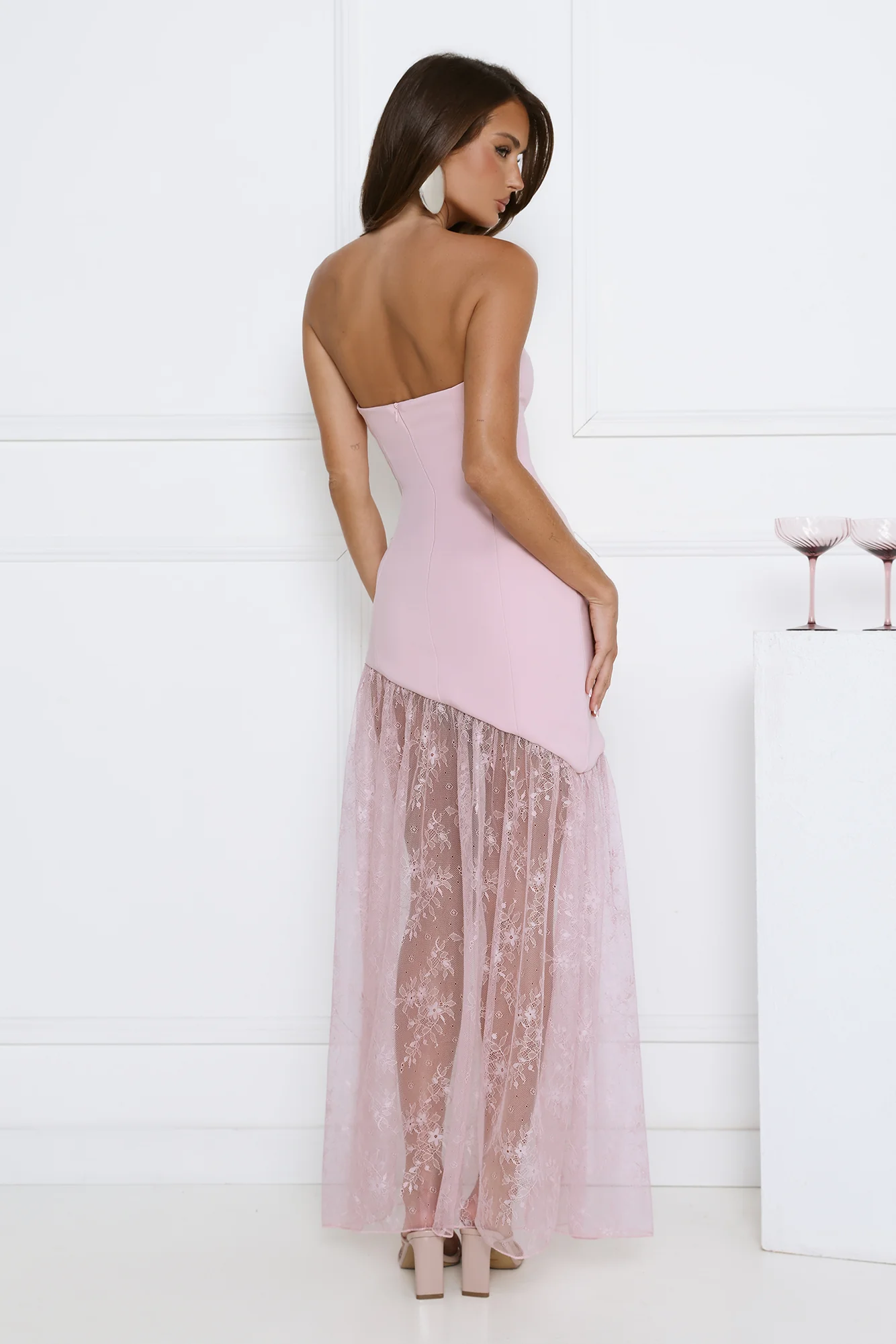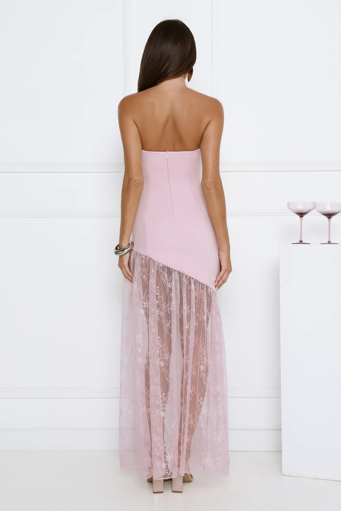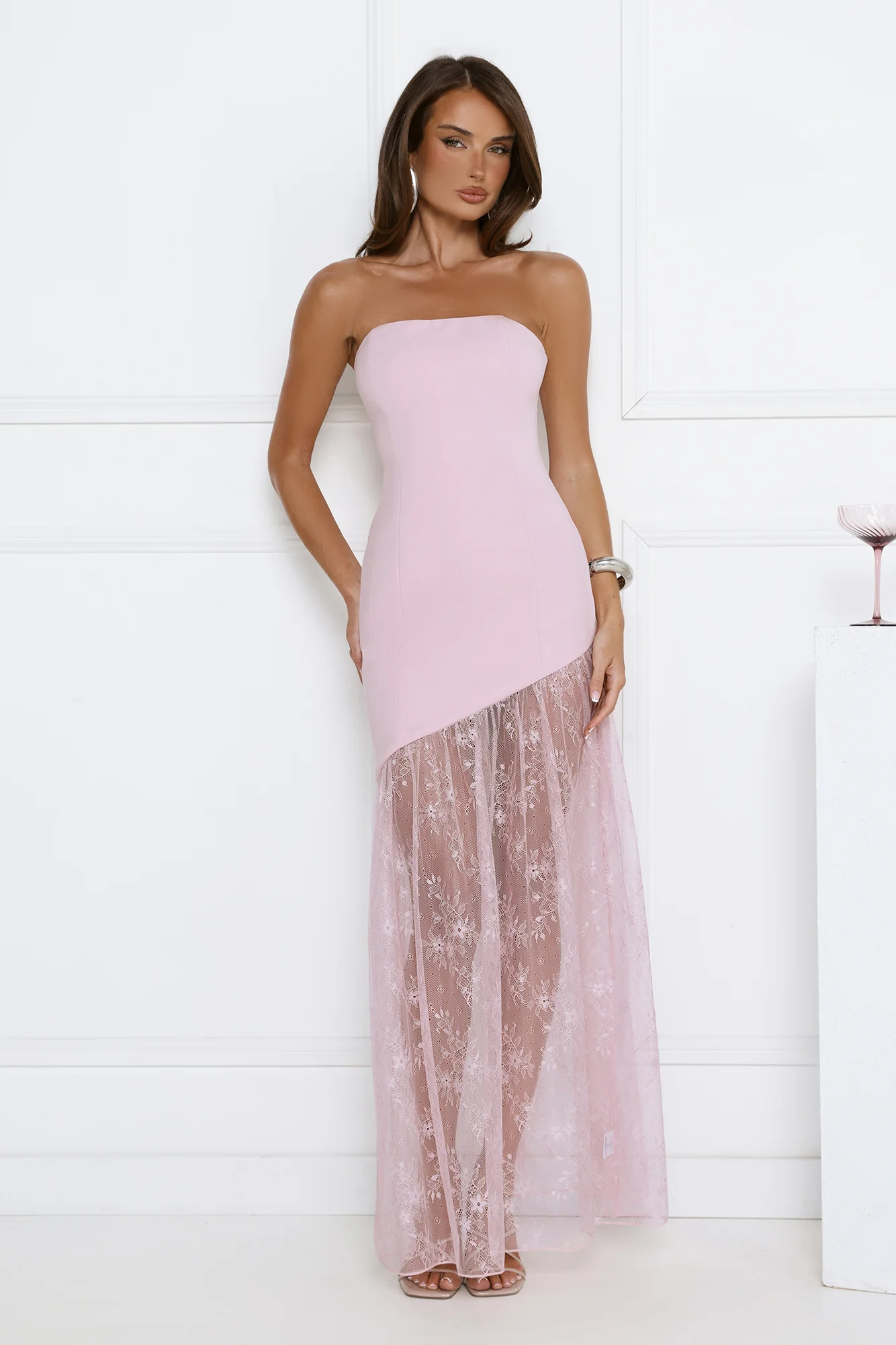 Fit For The Front Row Strapless Maxi Dress Pink