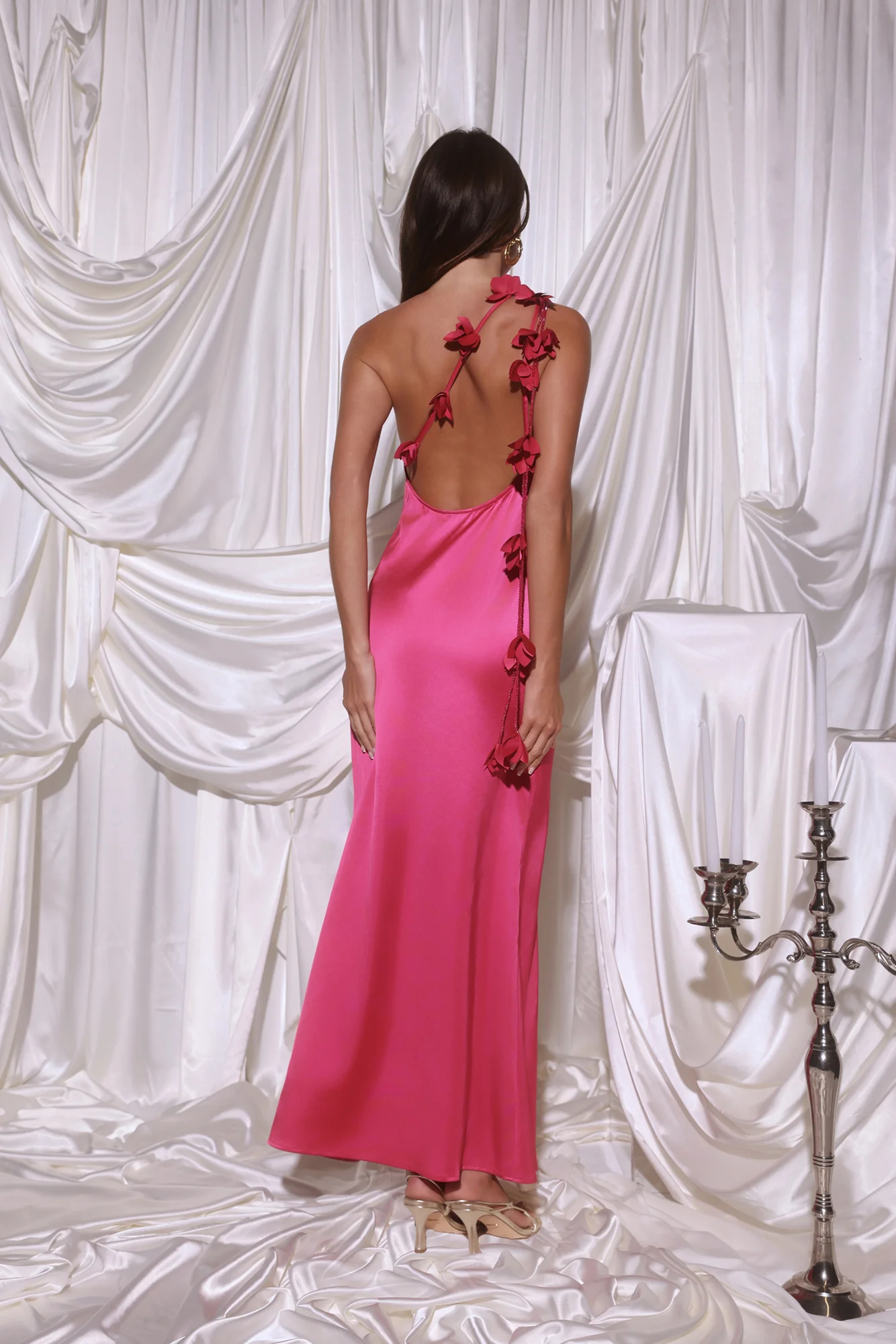 Romance Redefined One Shoulder Satin Maxi Dress Pink