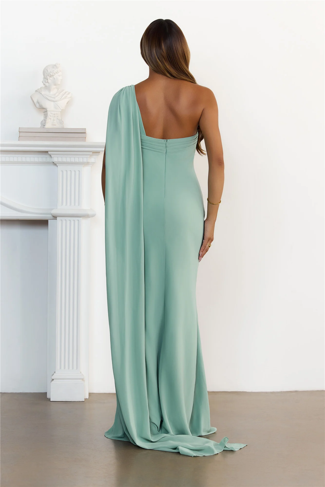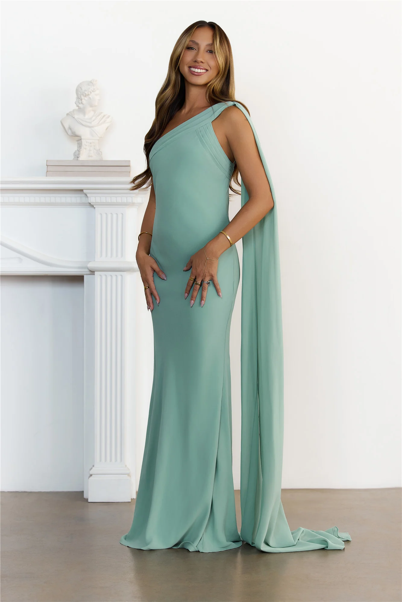 Sultry Drape One Shoulder Maxi Dress Sage