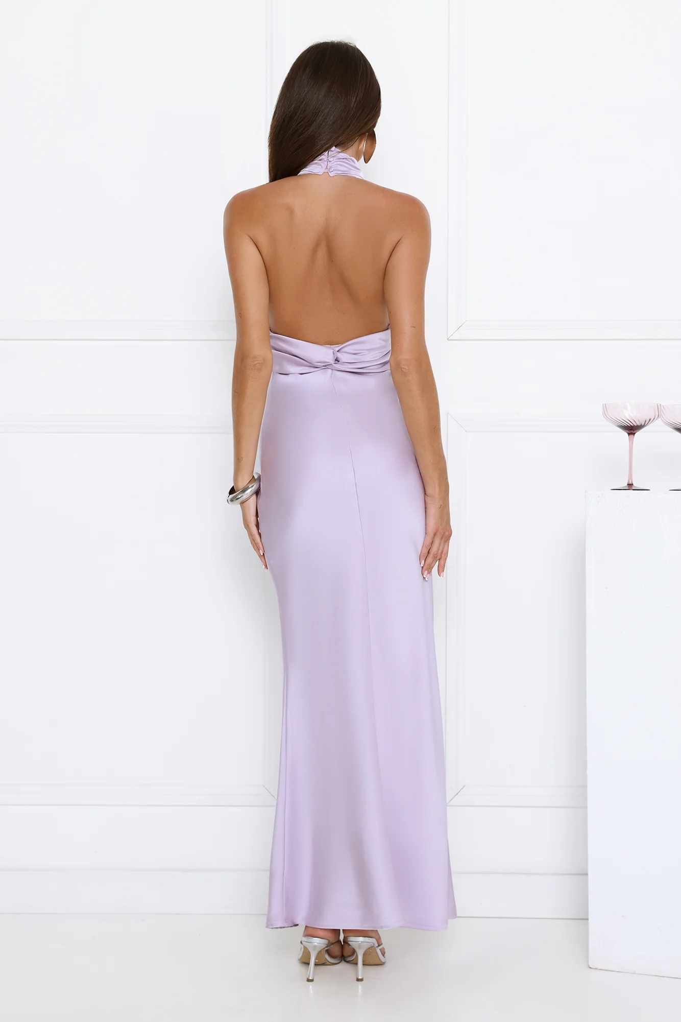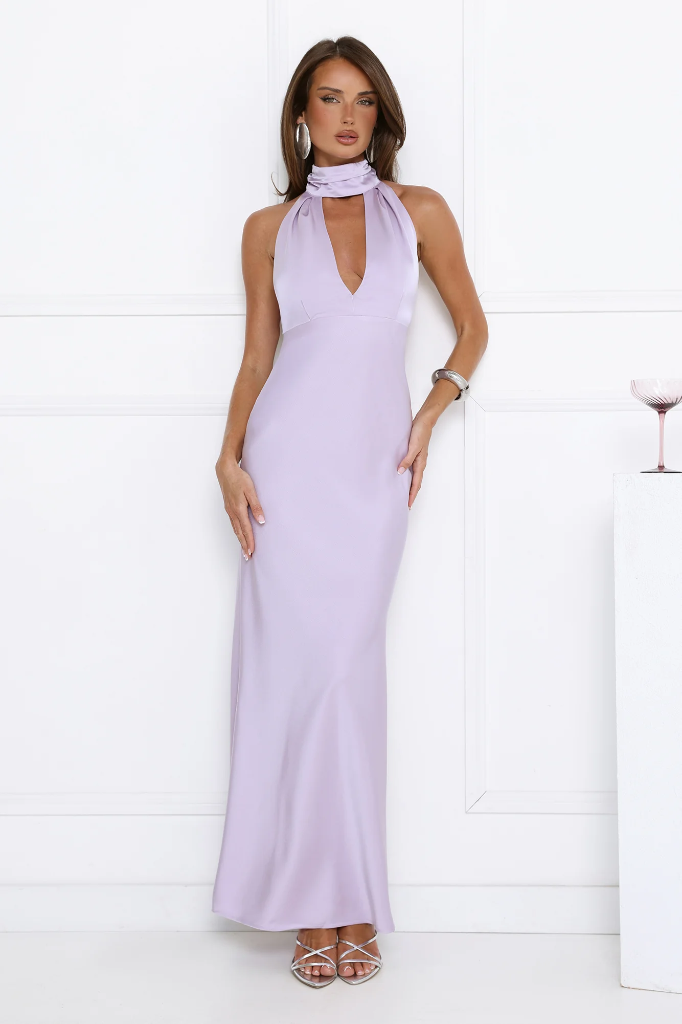 Summer Flame Kiss Halter Satin Maxi Dress Lilac