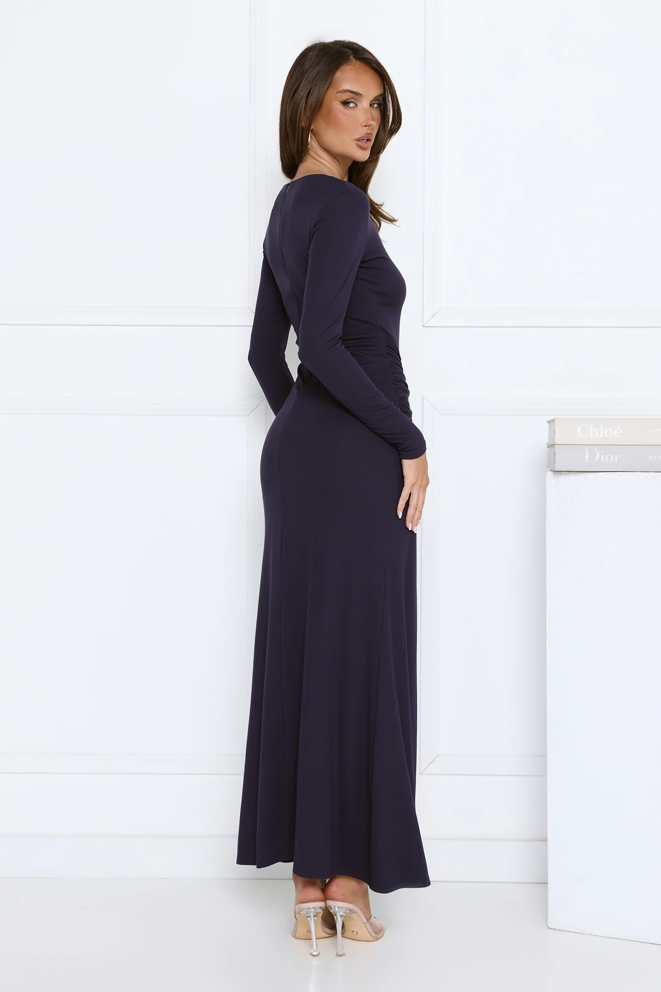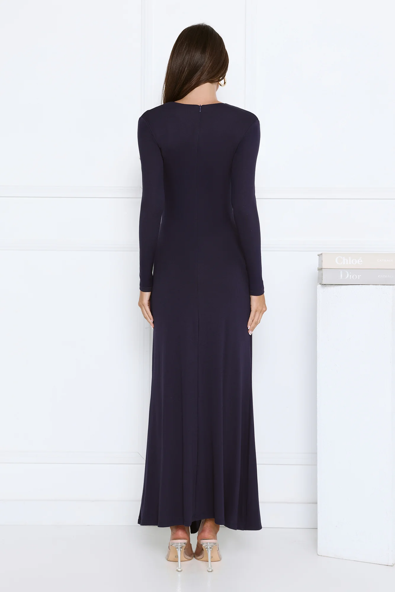 Sophisticated Silhouette Long Sleeve Maxi Dress Navy