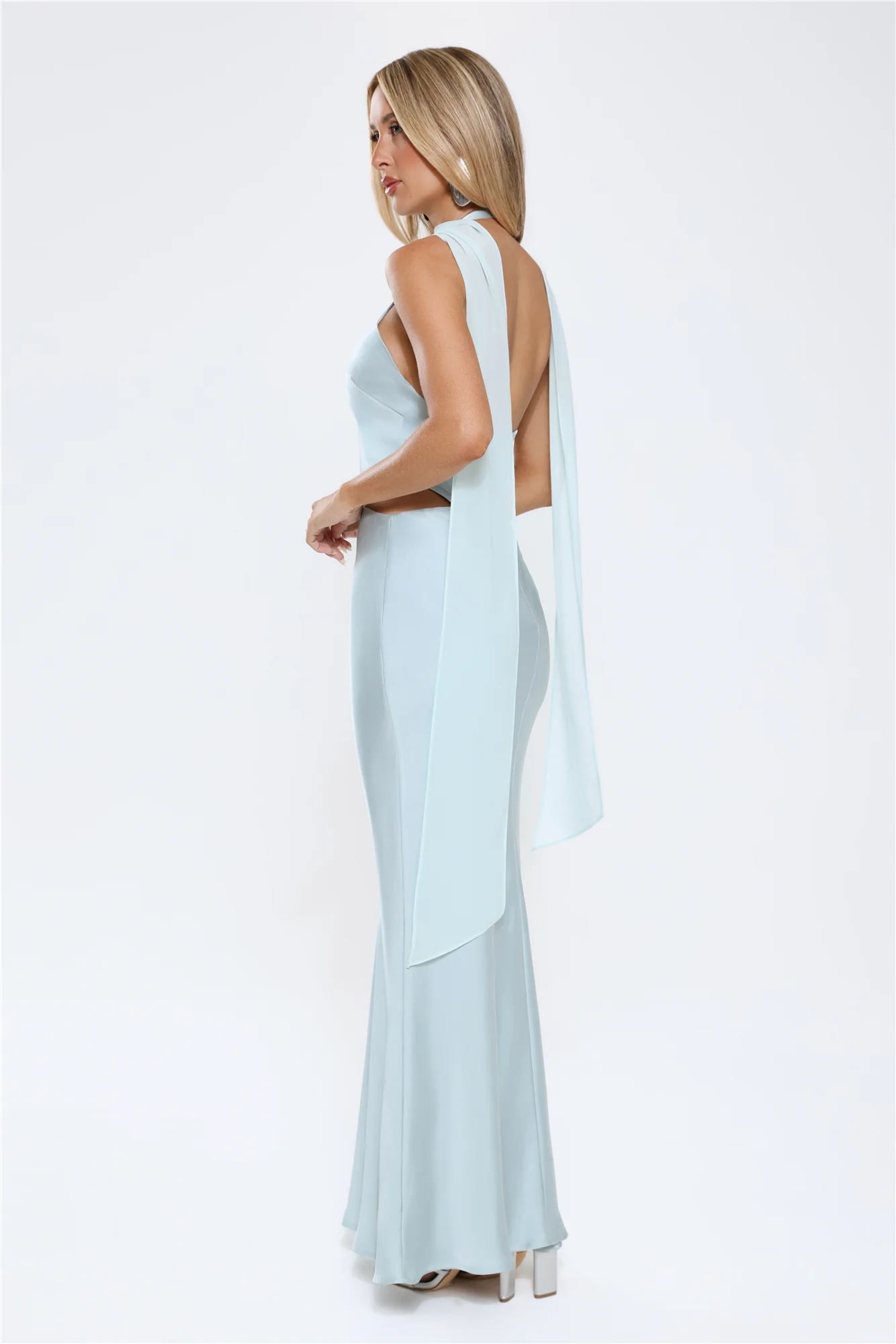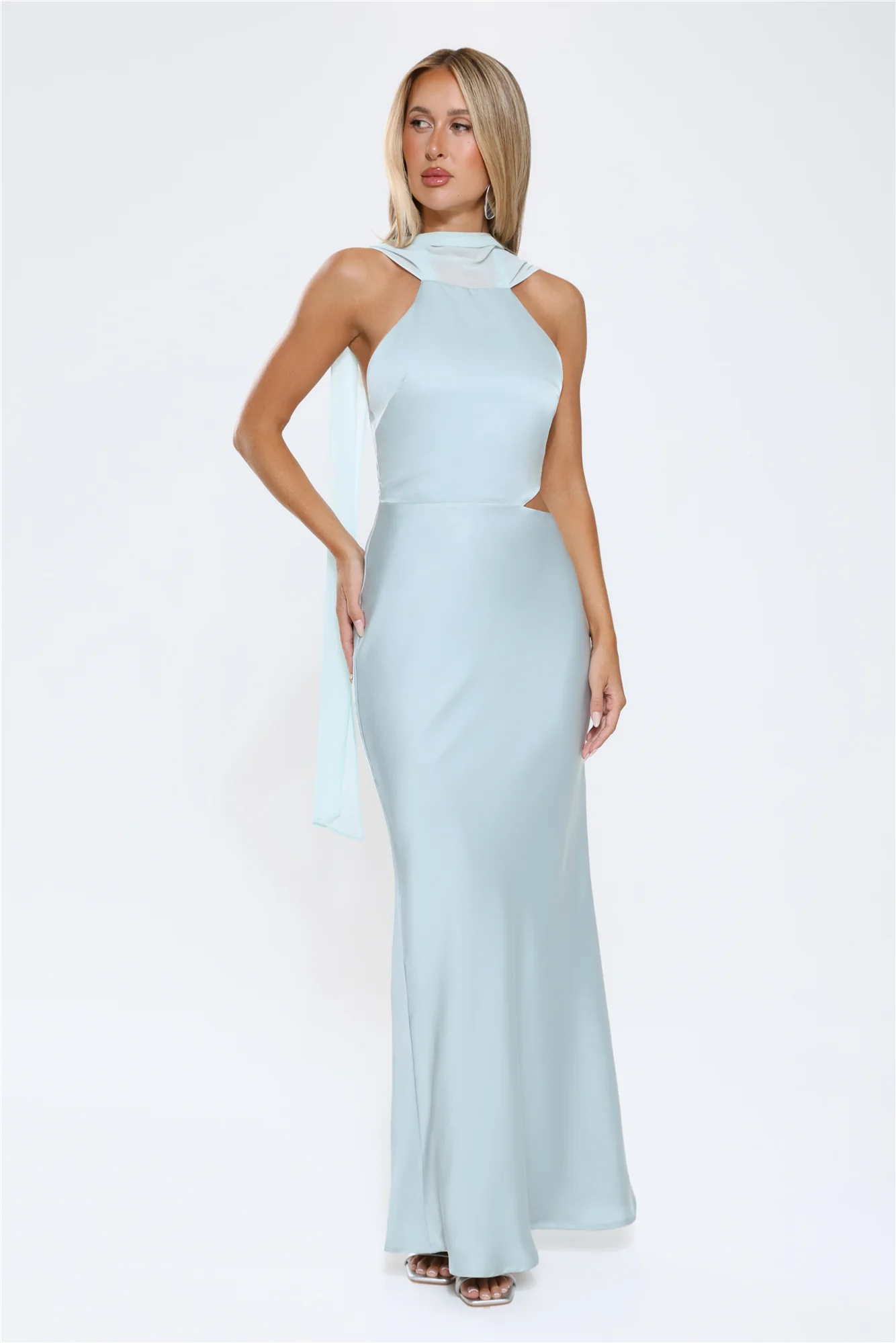 Luxe Obsession Halter Satin Maxi Dress Seafoam
