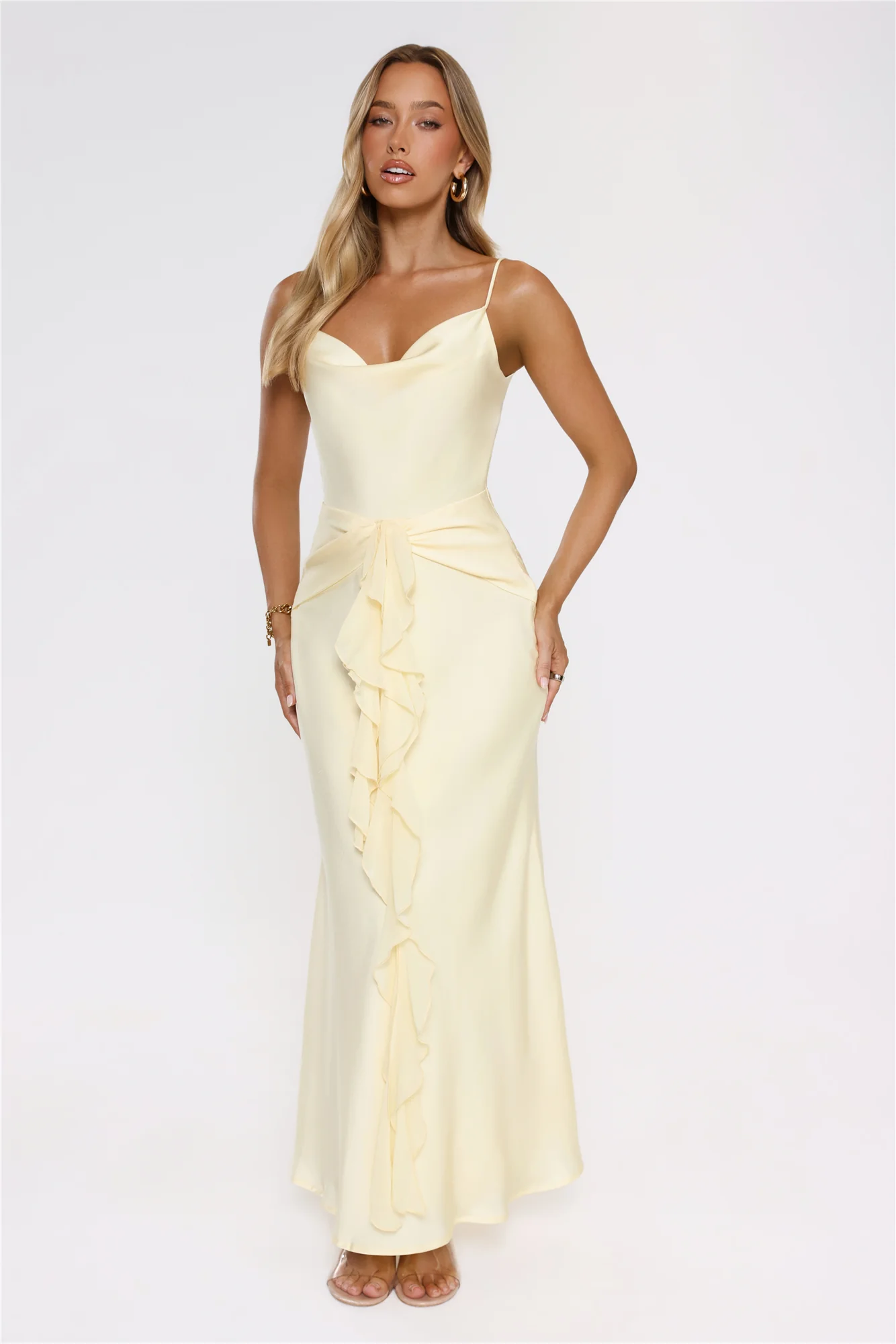 Smiling Sunrays Satin Maxi Dress Yellow