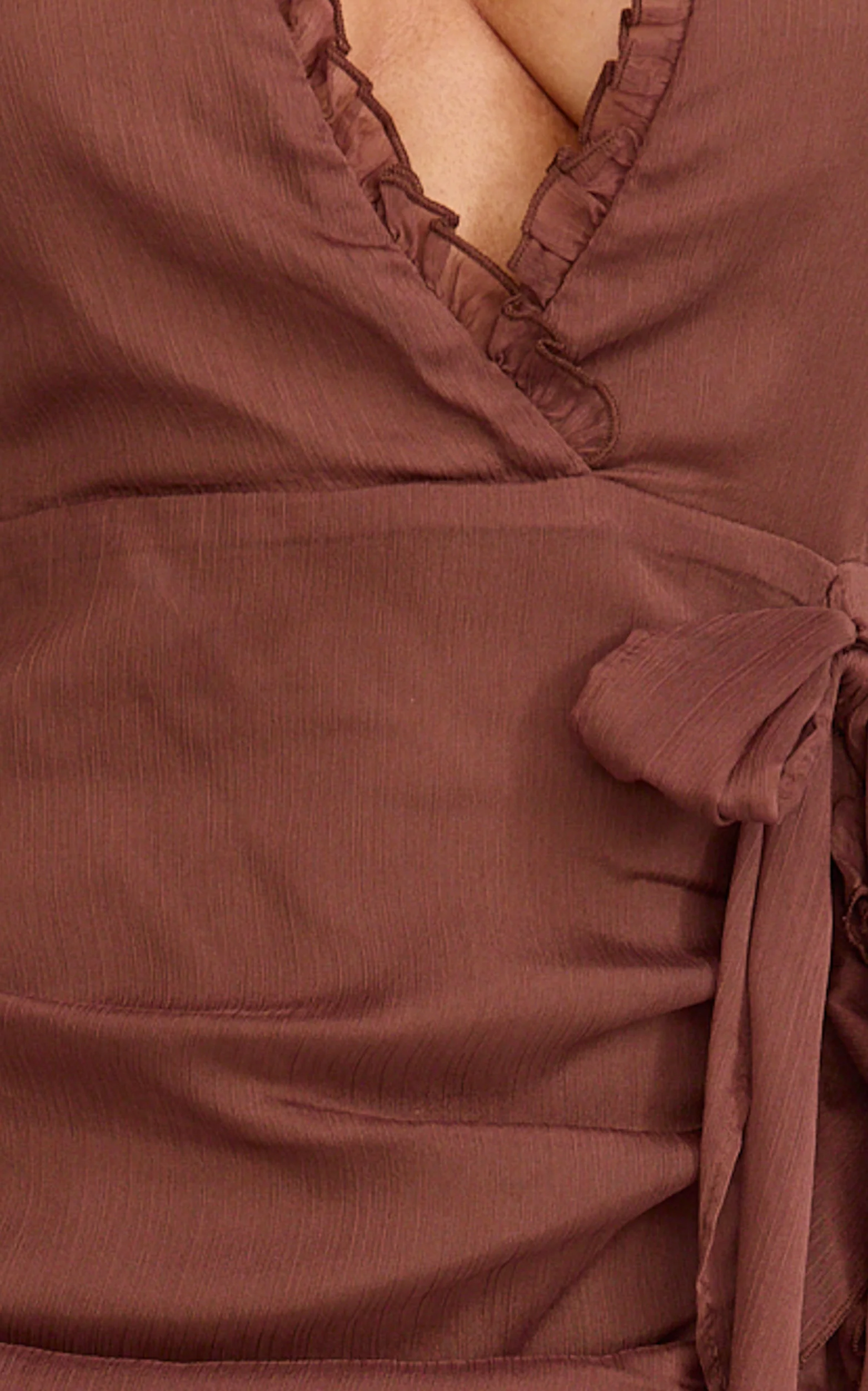 Eleonor Maxi Dress - Plunge Halter Tiered Ruffle Front Split Dress in Chocolate