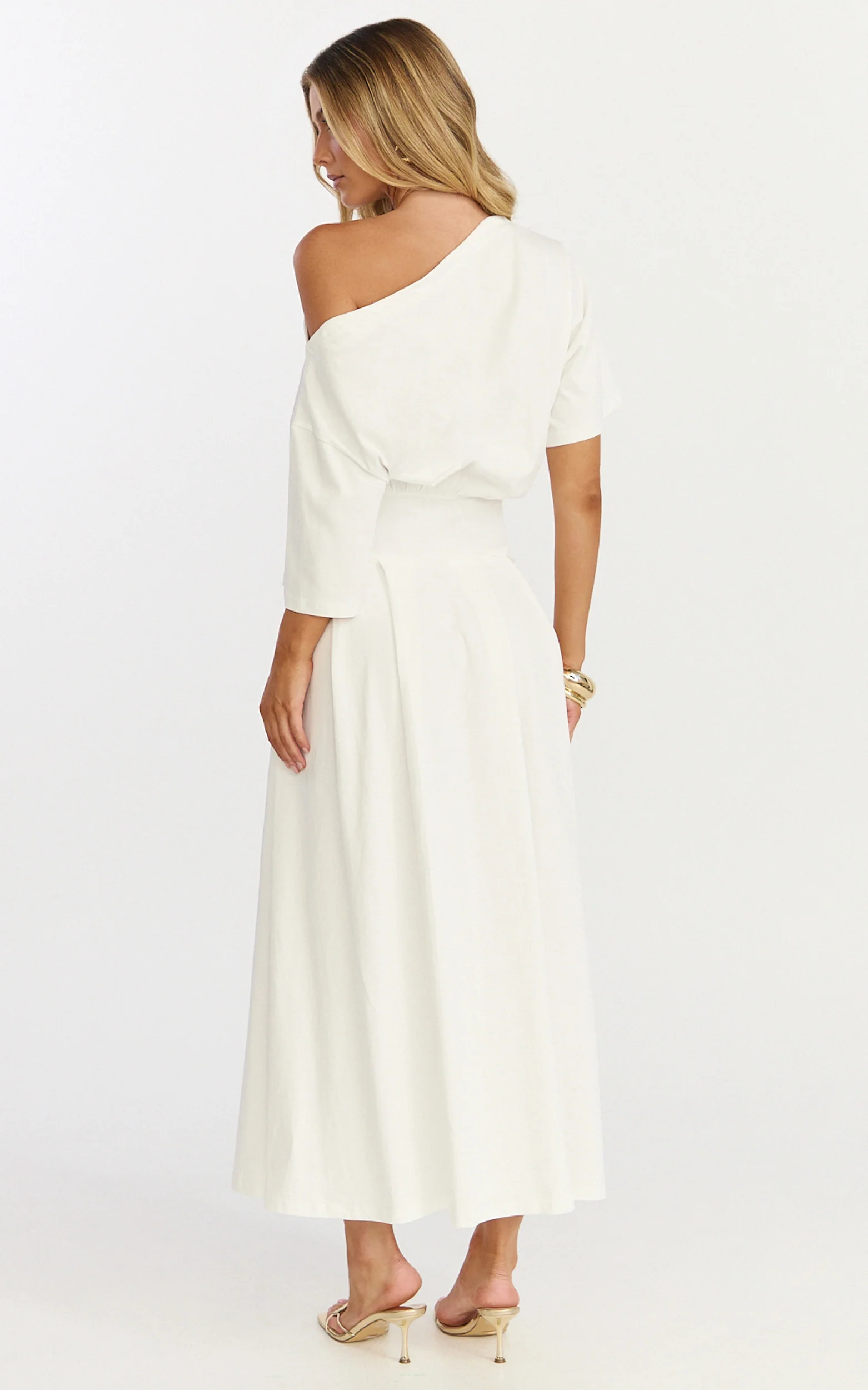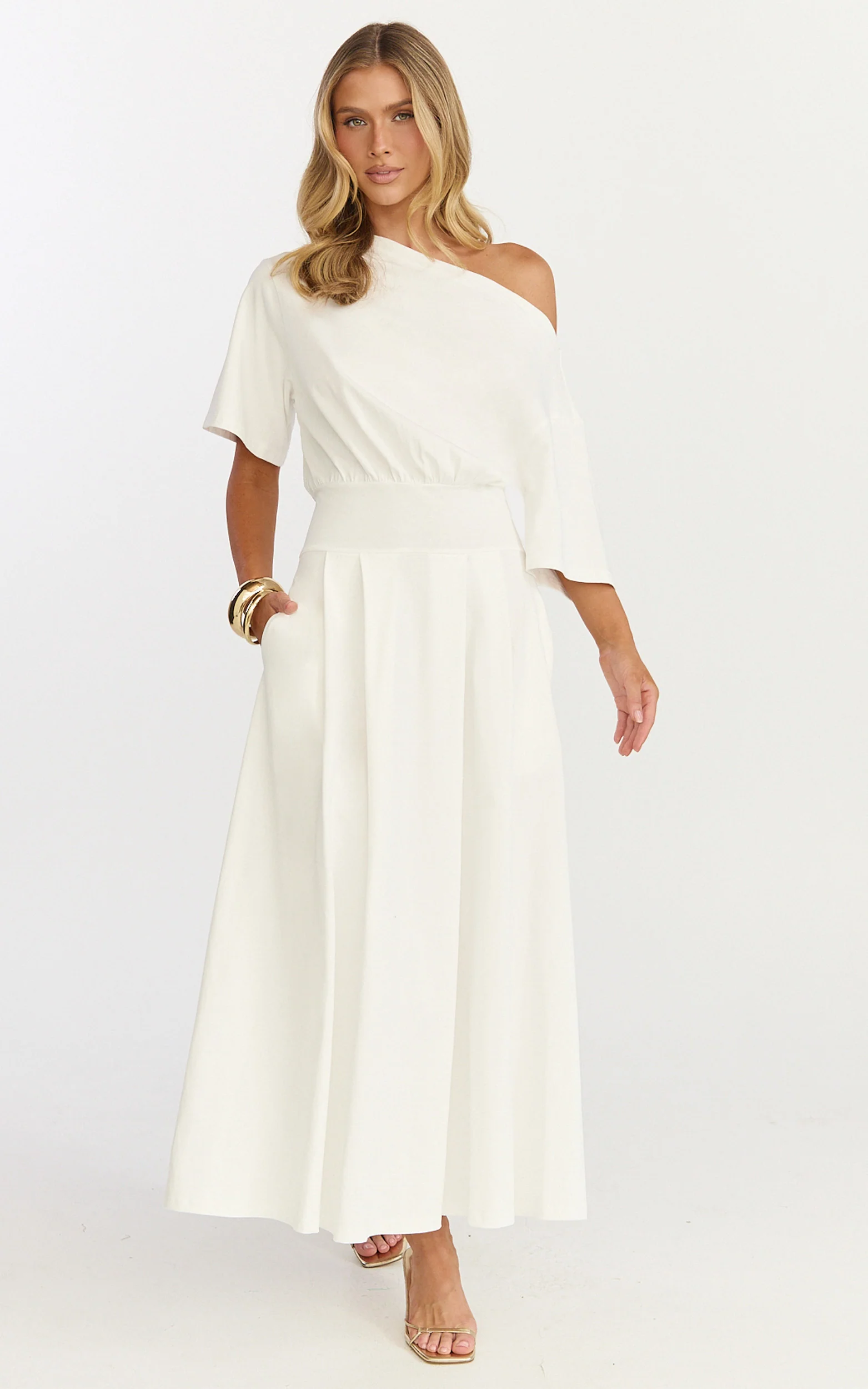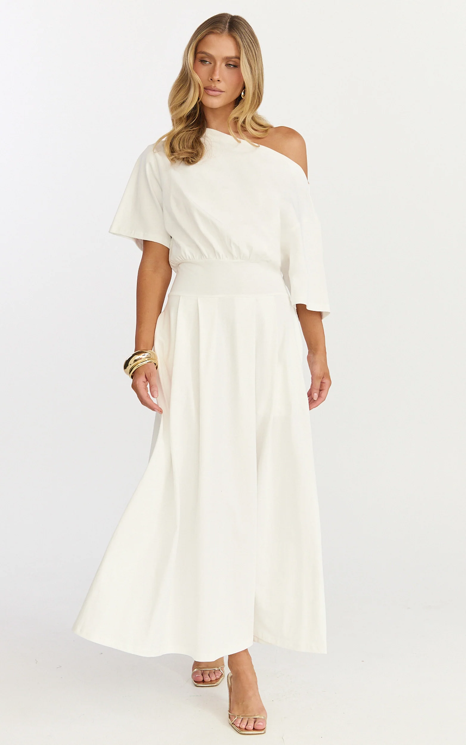 Tami Midi Dress - Off Shoulder Dress in White