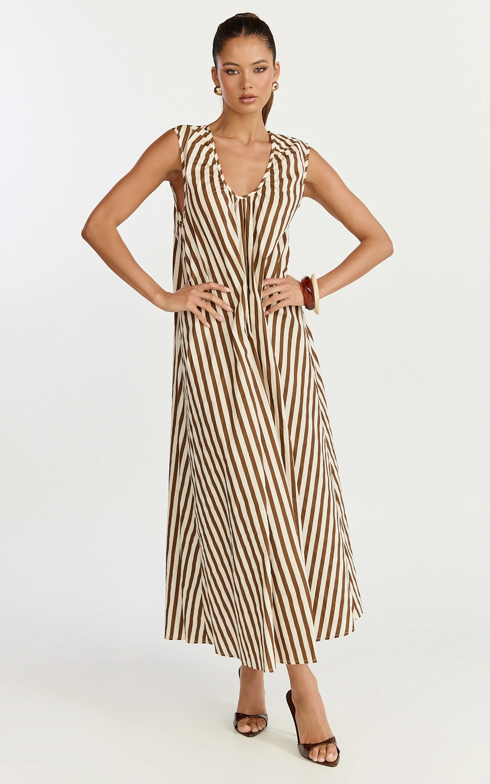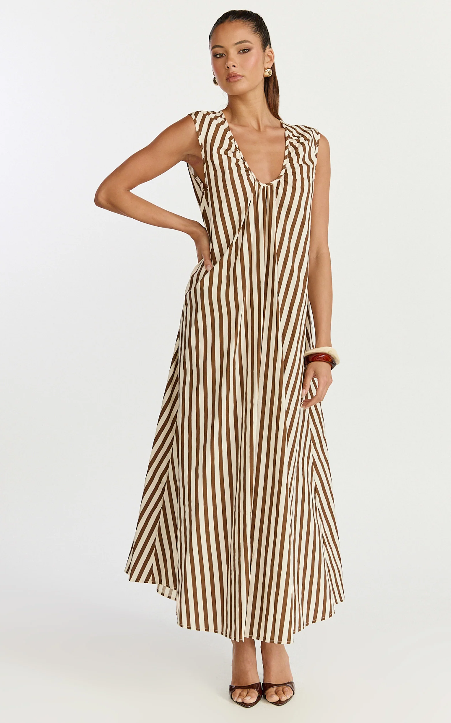 Raye Midi Dress - Sleeveless Dress in Chocolate