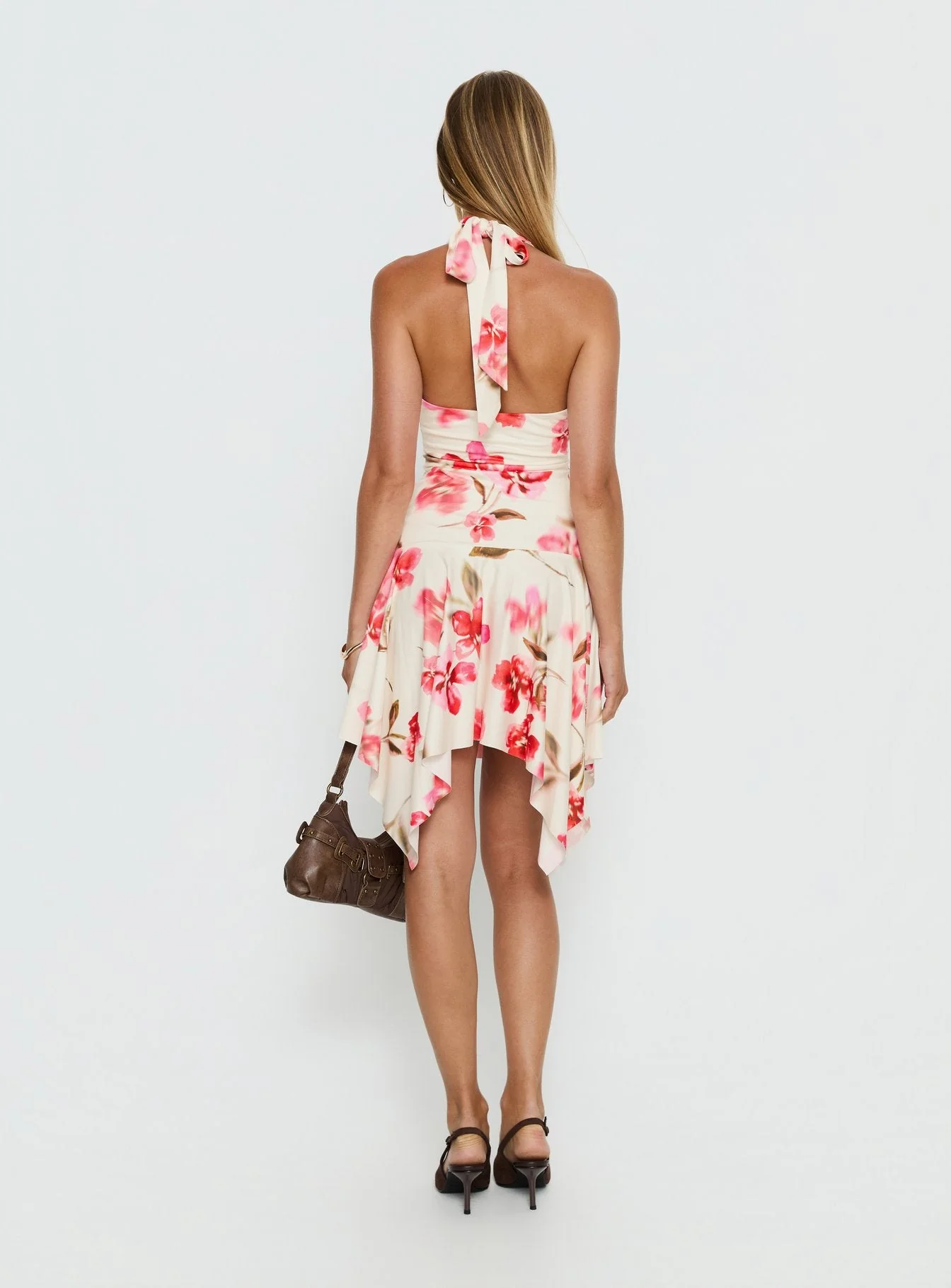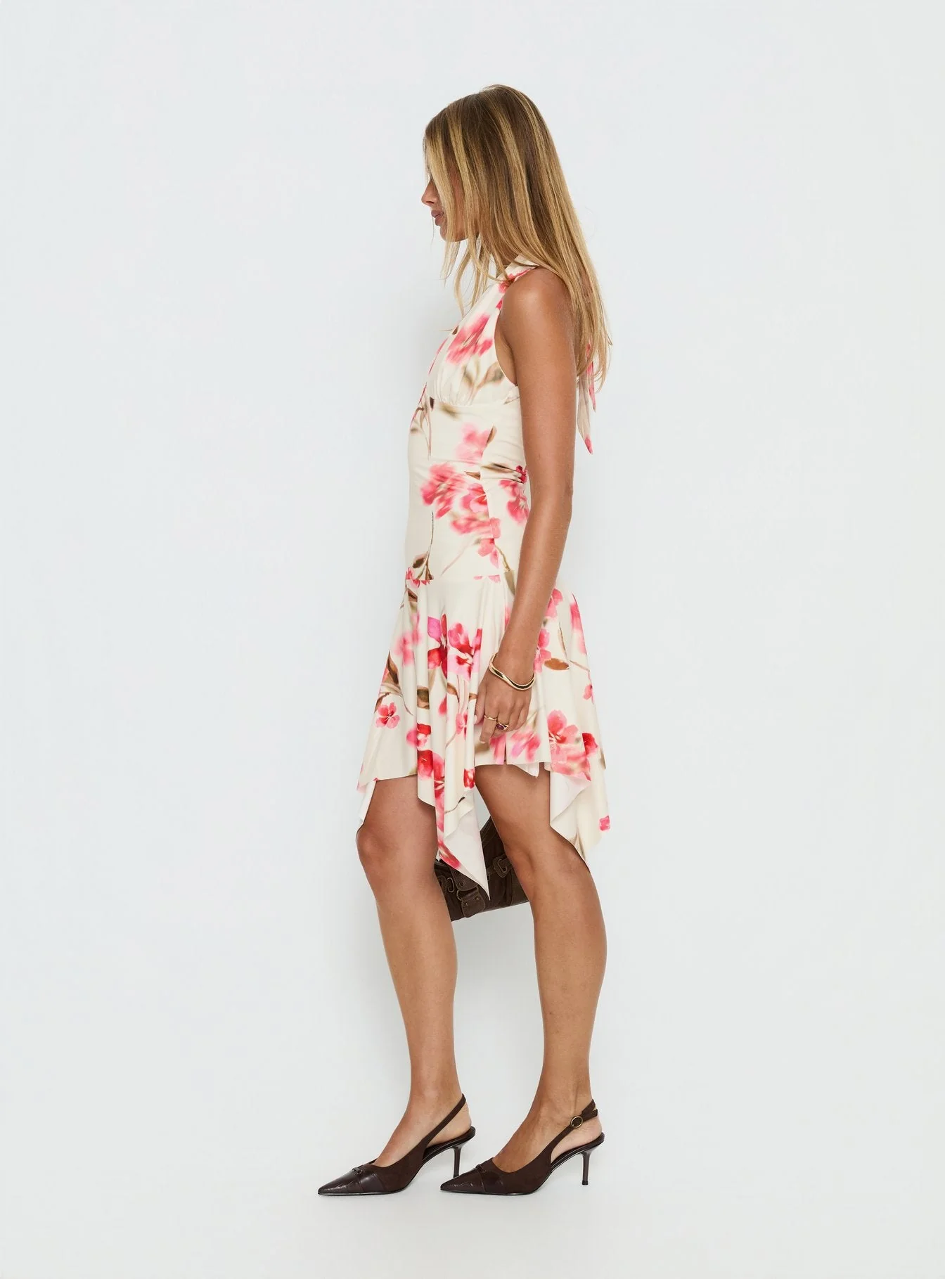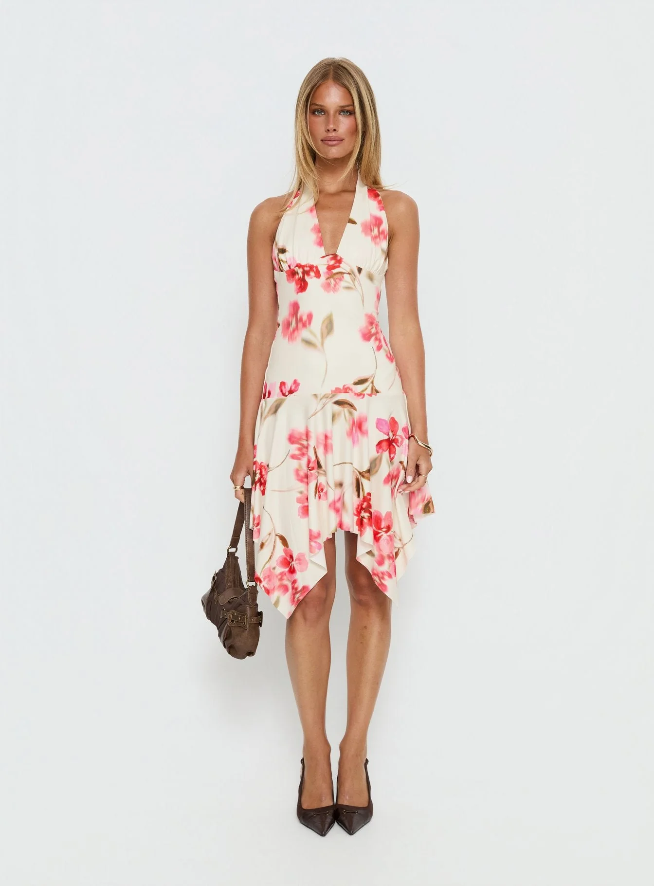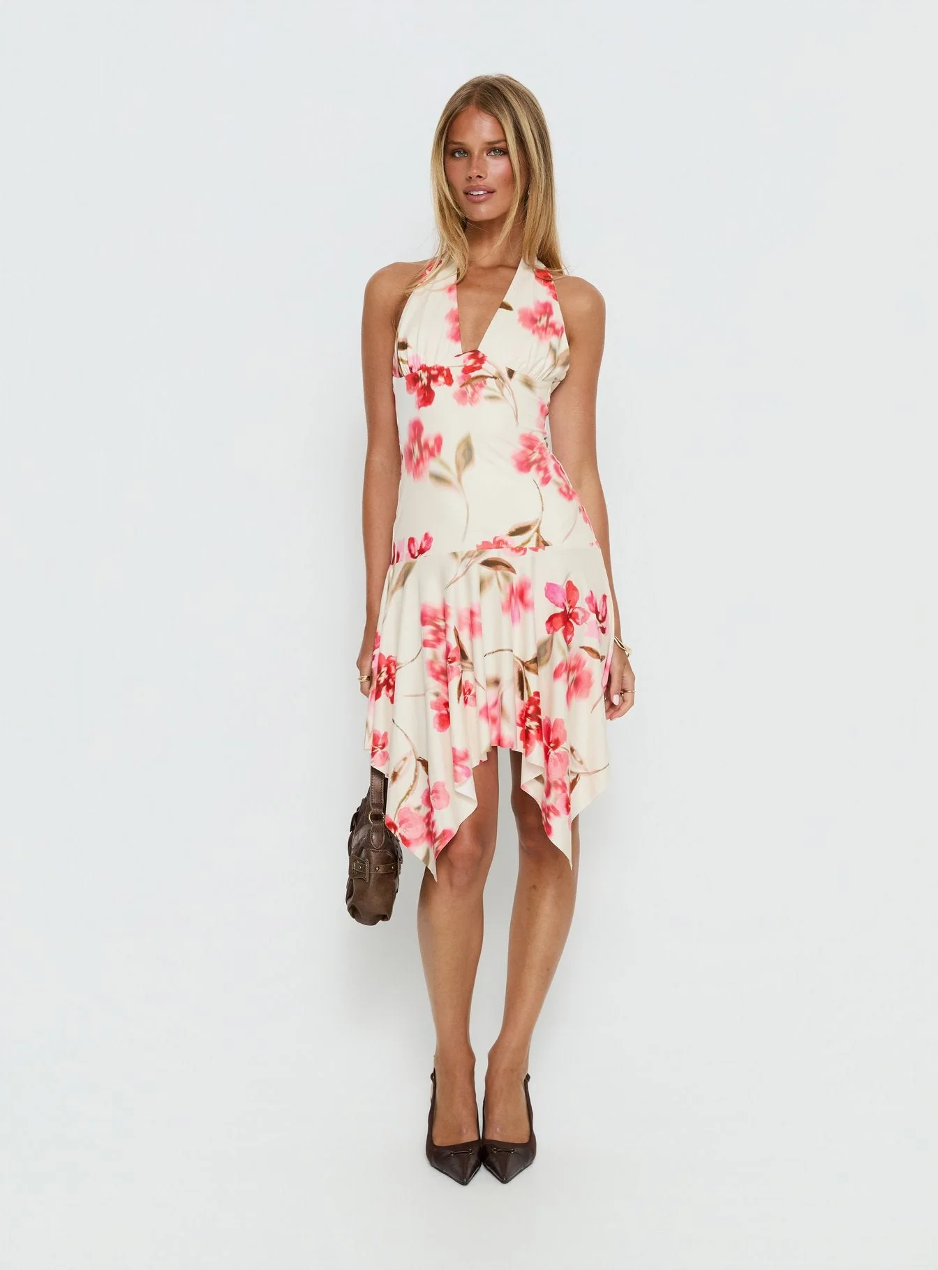 Loreza Halter Asymmetrical Midi Dress Cream Floral
