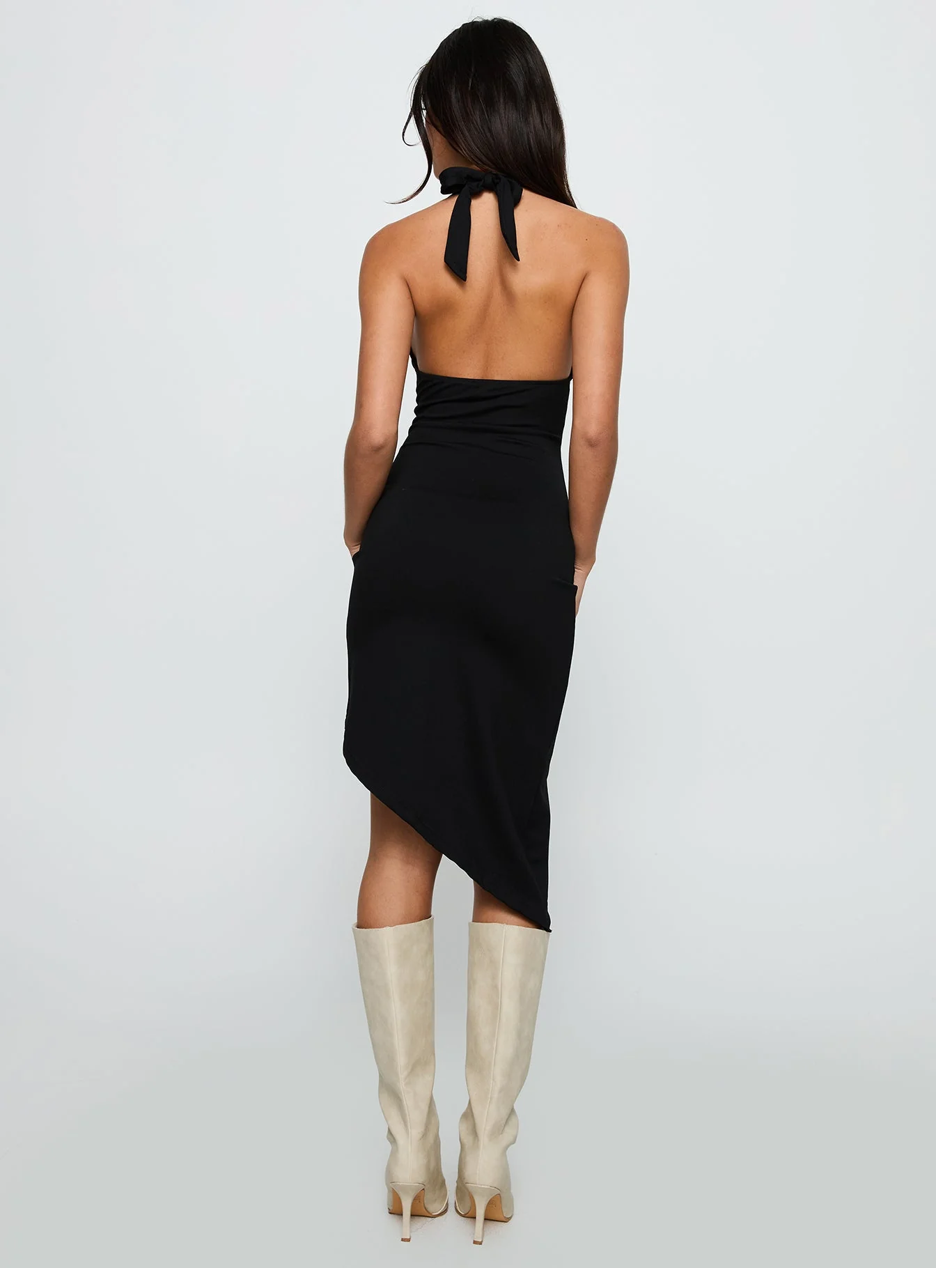 Whimsy Asymmetrical Midi Dress Black