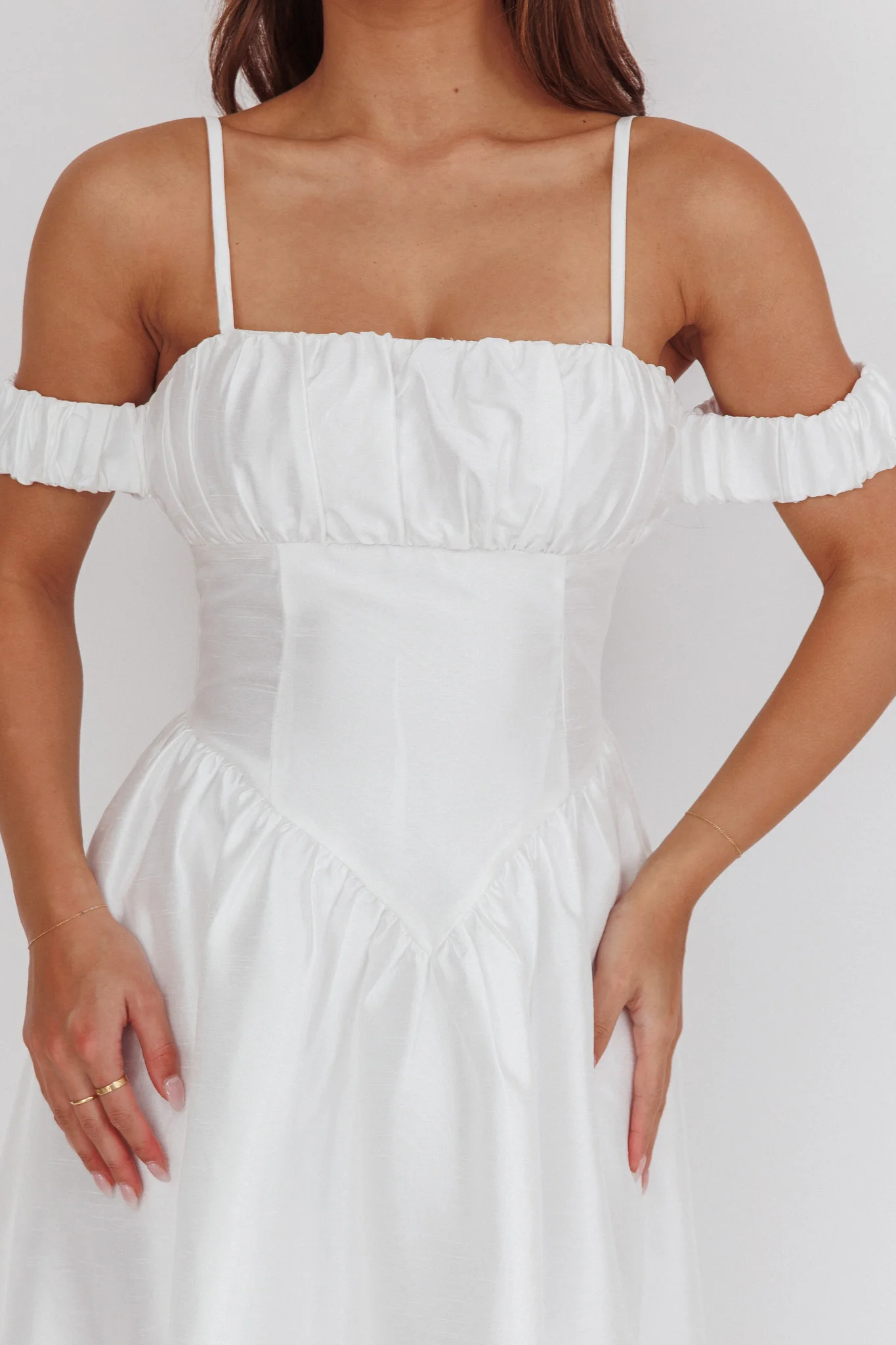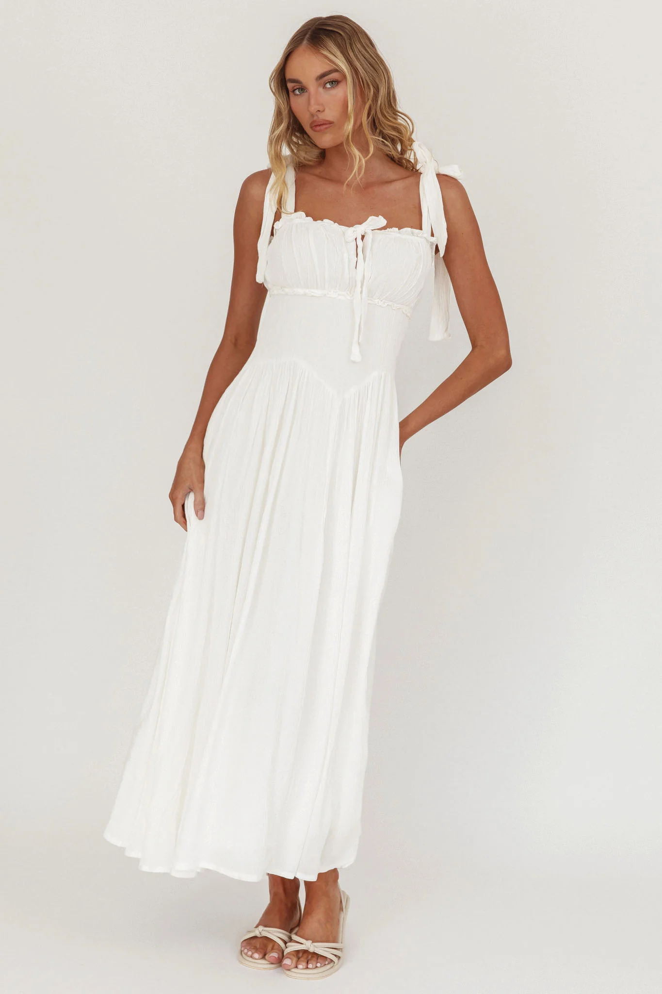 Albury Tied Shoulder Basque Waist Midi Dress White