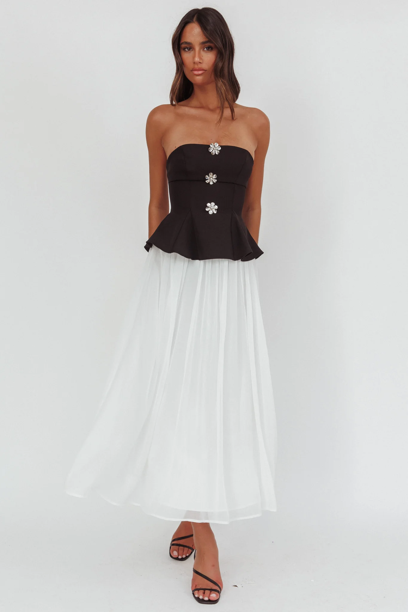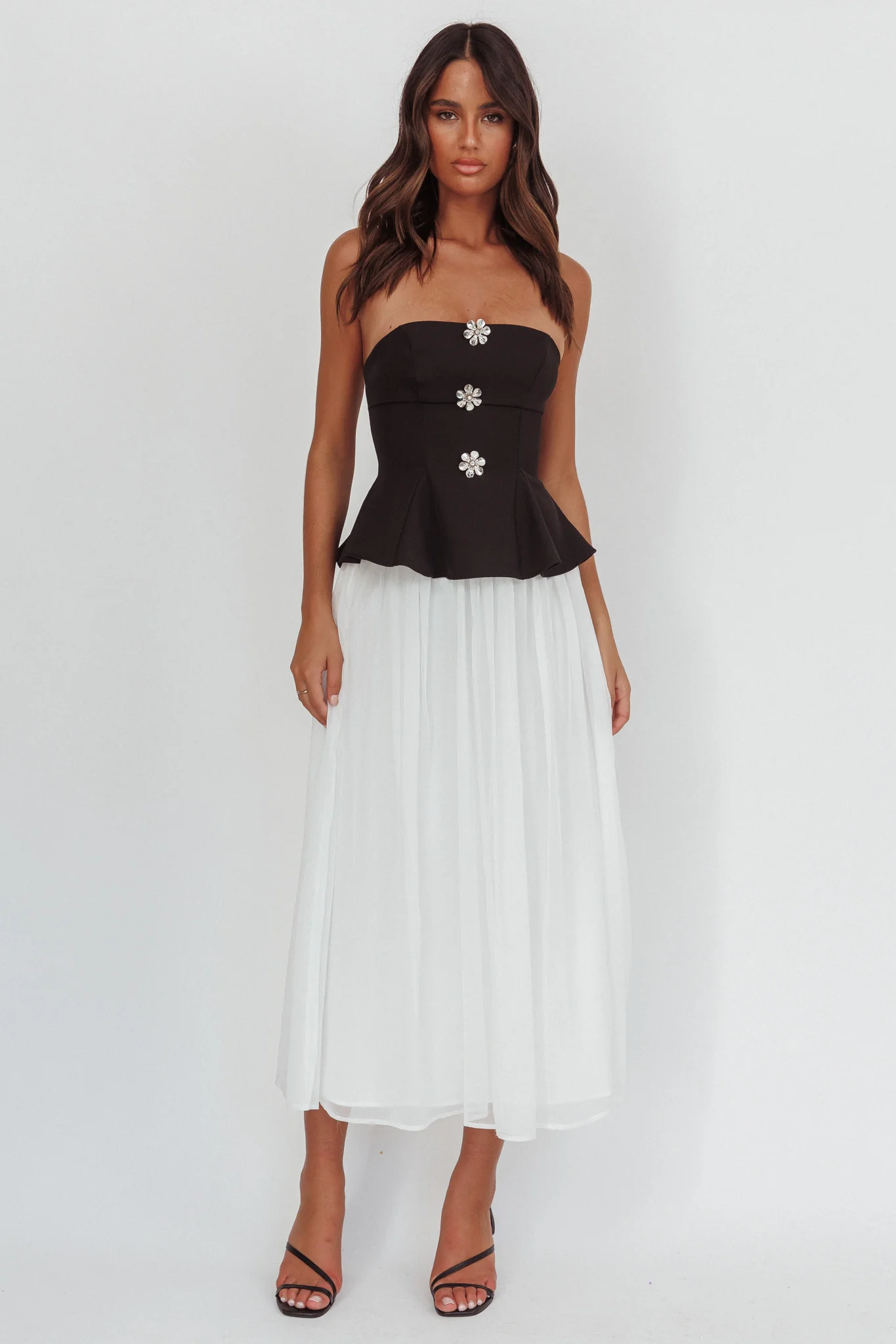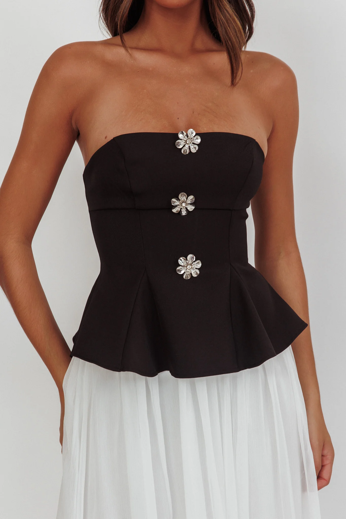 Wilma Sheer Hem Strapless Midi Dress Orchids Brown