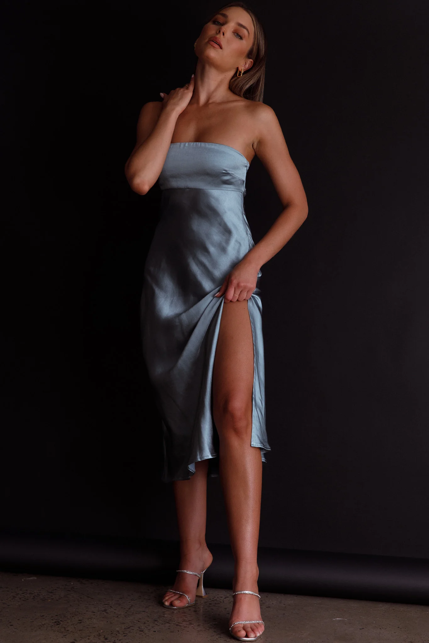 Stars Align Halterneck Satin Midi Dress Cobalt Blue