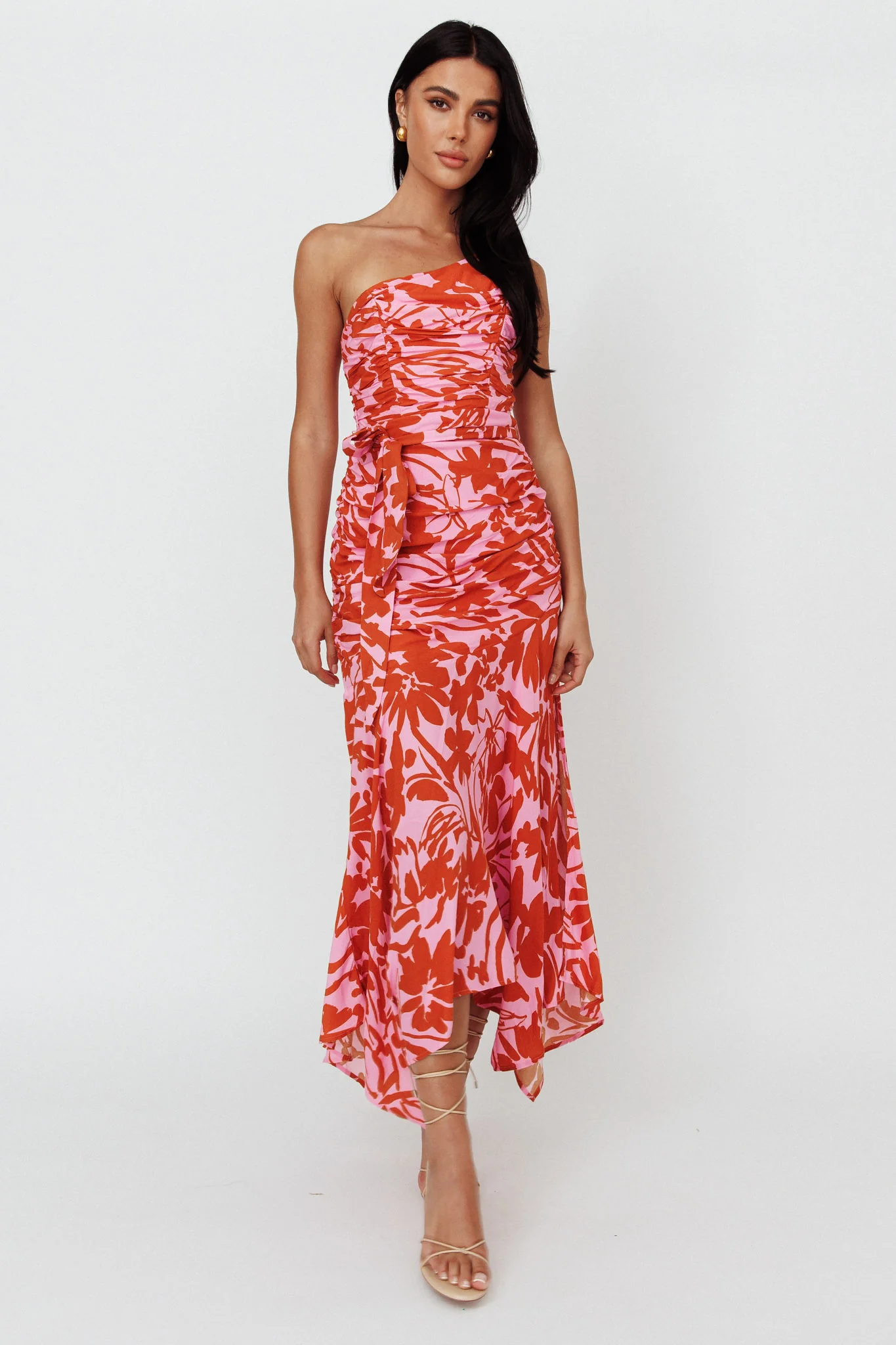 Deonne Twist Waist Midi Dress Pink
