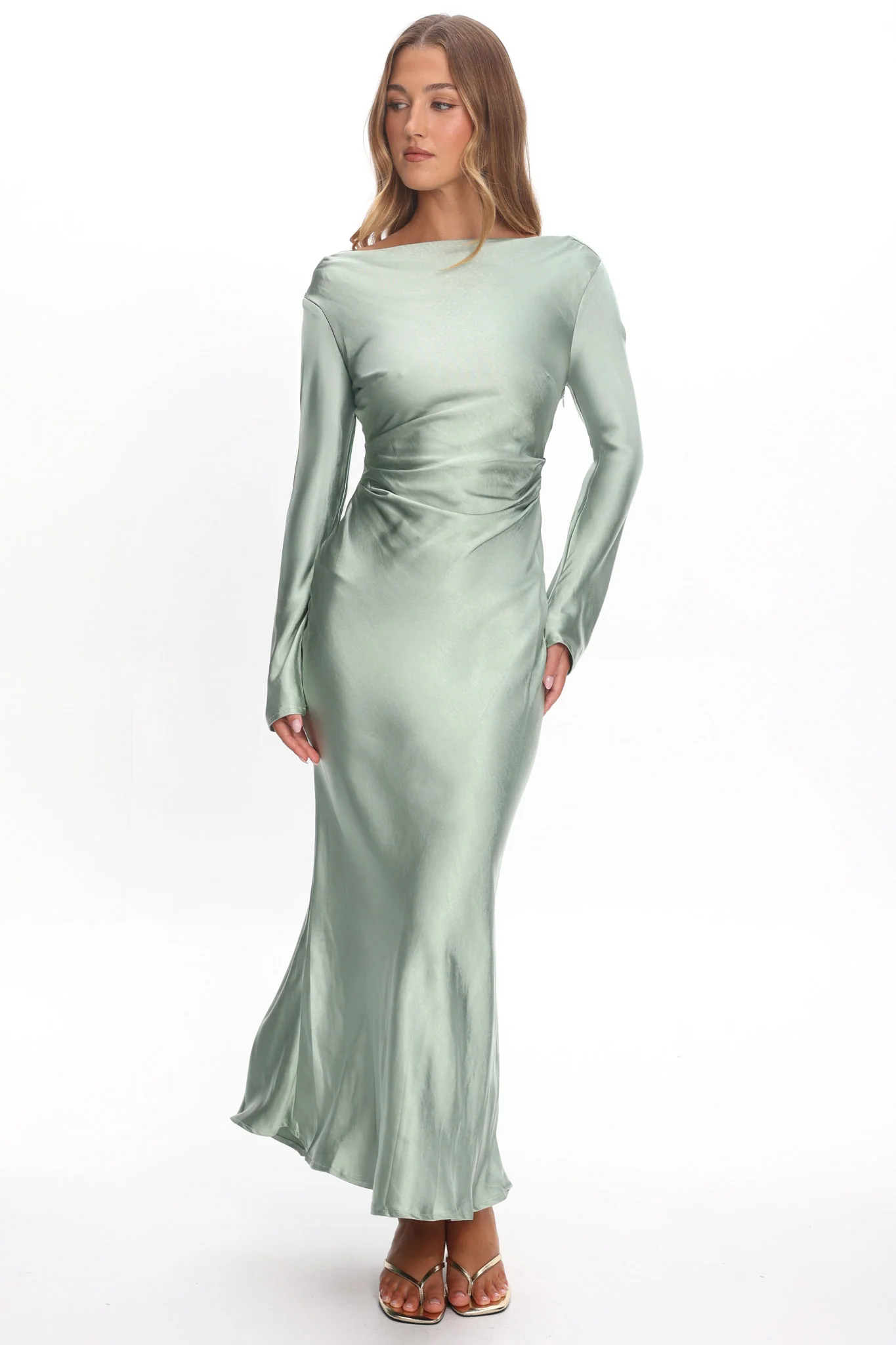 Linka Off-Shoulder Tie Back Midi Dress Steel Blue