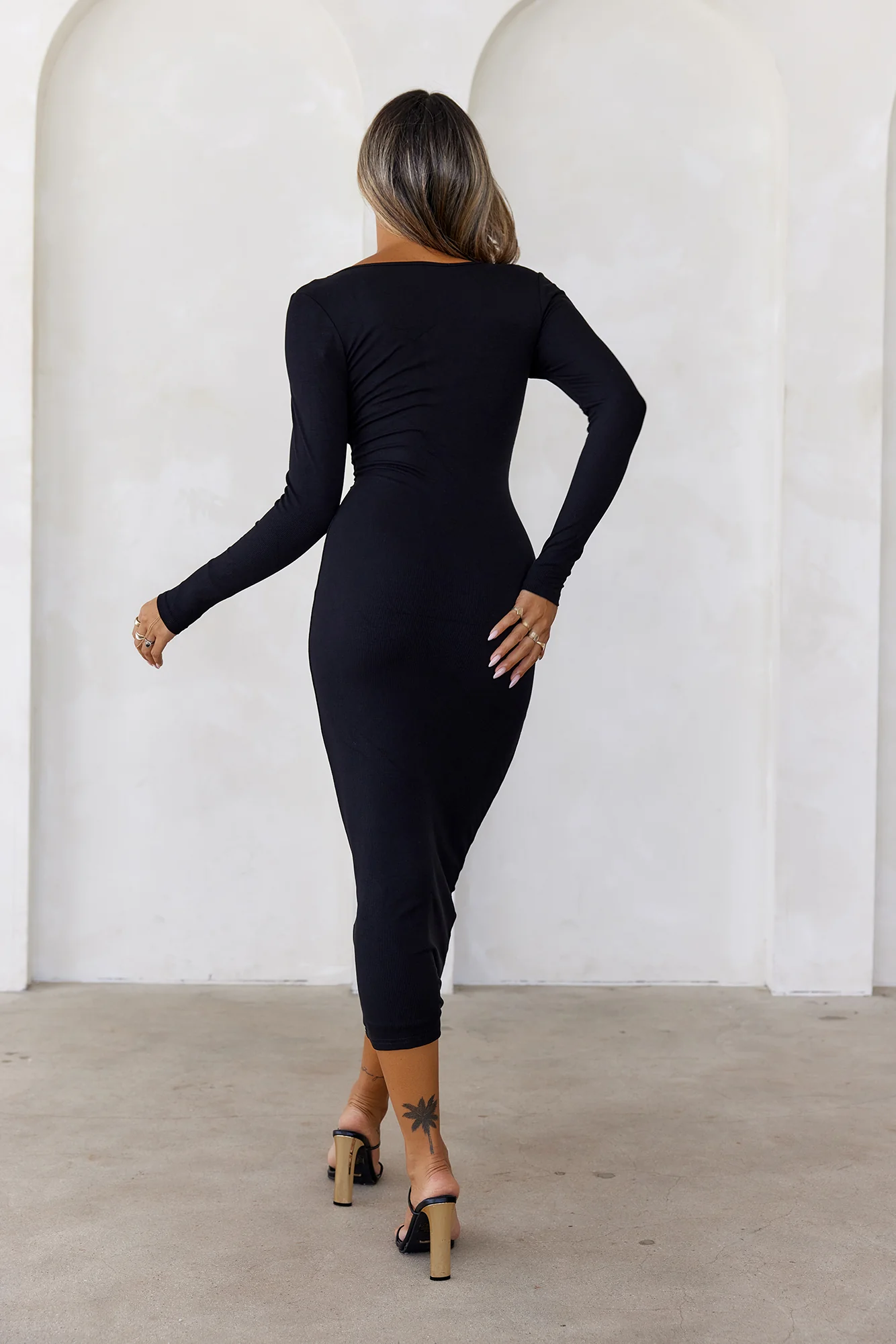 BASE The Must Own Long Sleeve Ribbed Midi Dress Black
