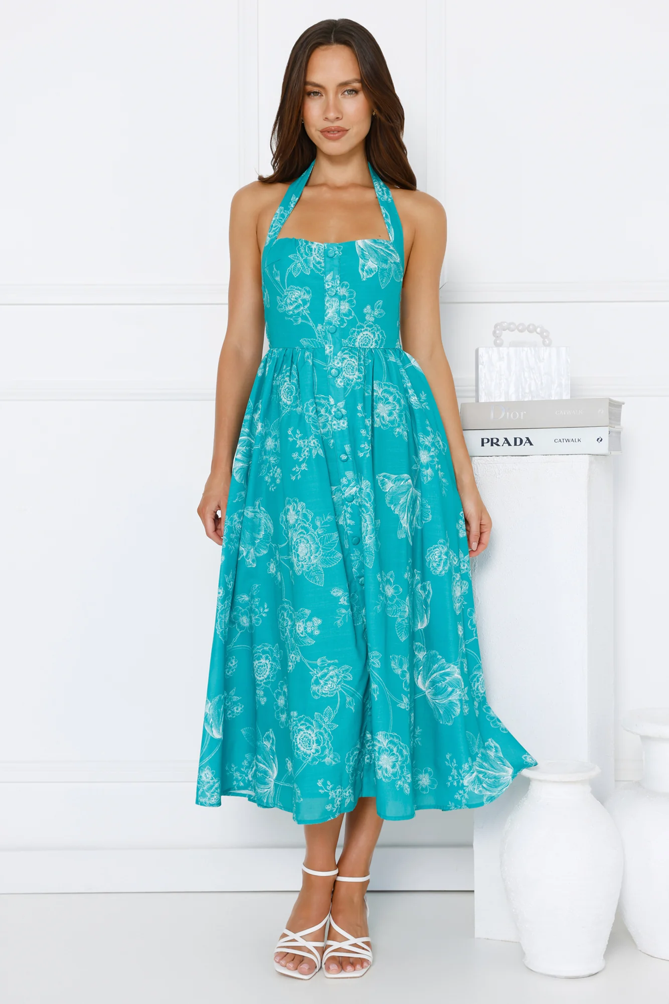 Tanisha Off Shoulder Mesh Midi Dress Green
