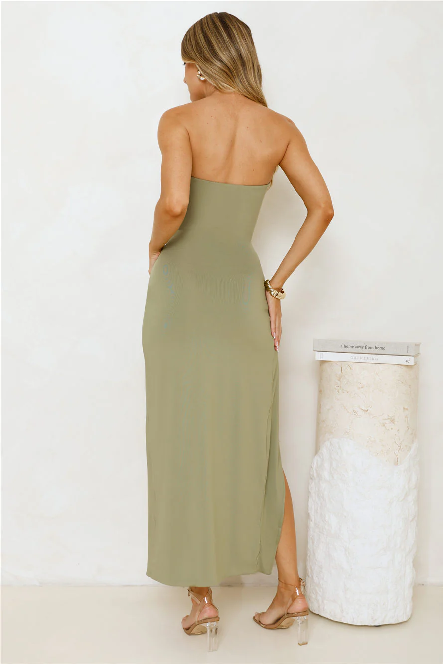 Caviar Please Strapless Midi Dress Olive
