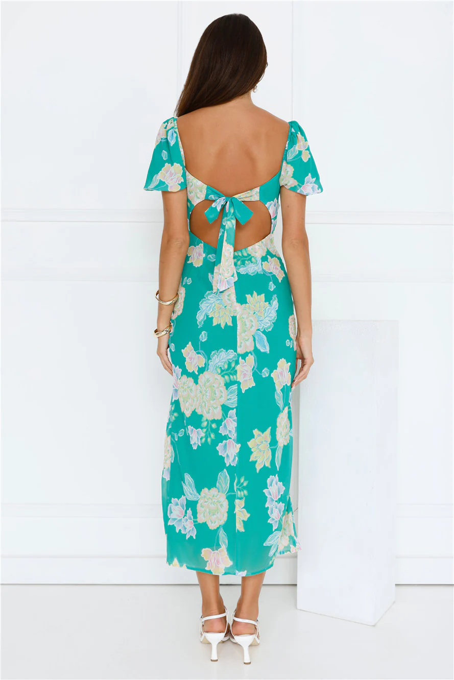 Floral Vines Midi Dress Green