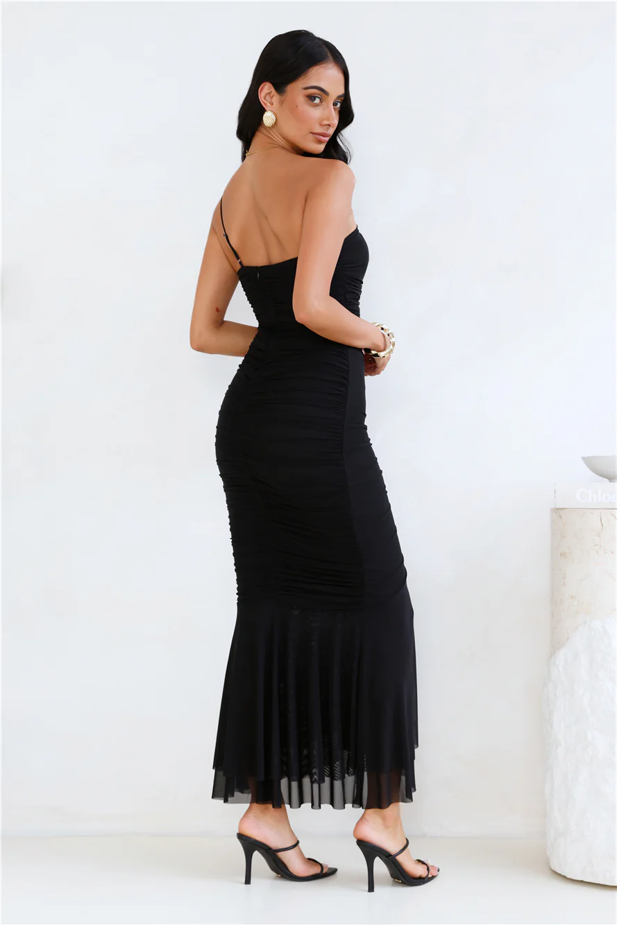 Ultra Luxe Strapless Mesh Midi Dress Black