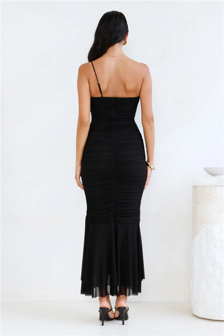 Style Night One Shoulder Mesh Midi Dress Black