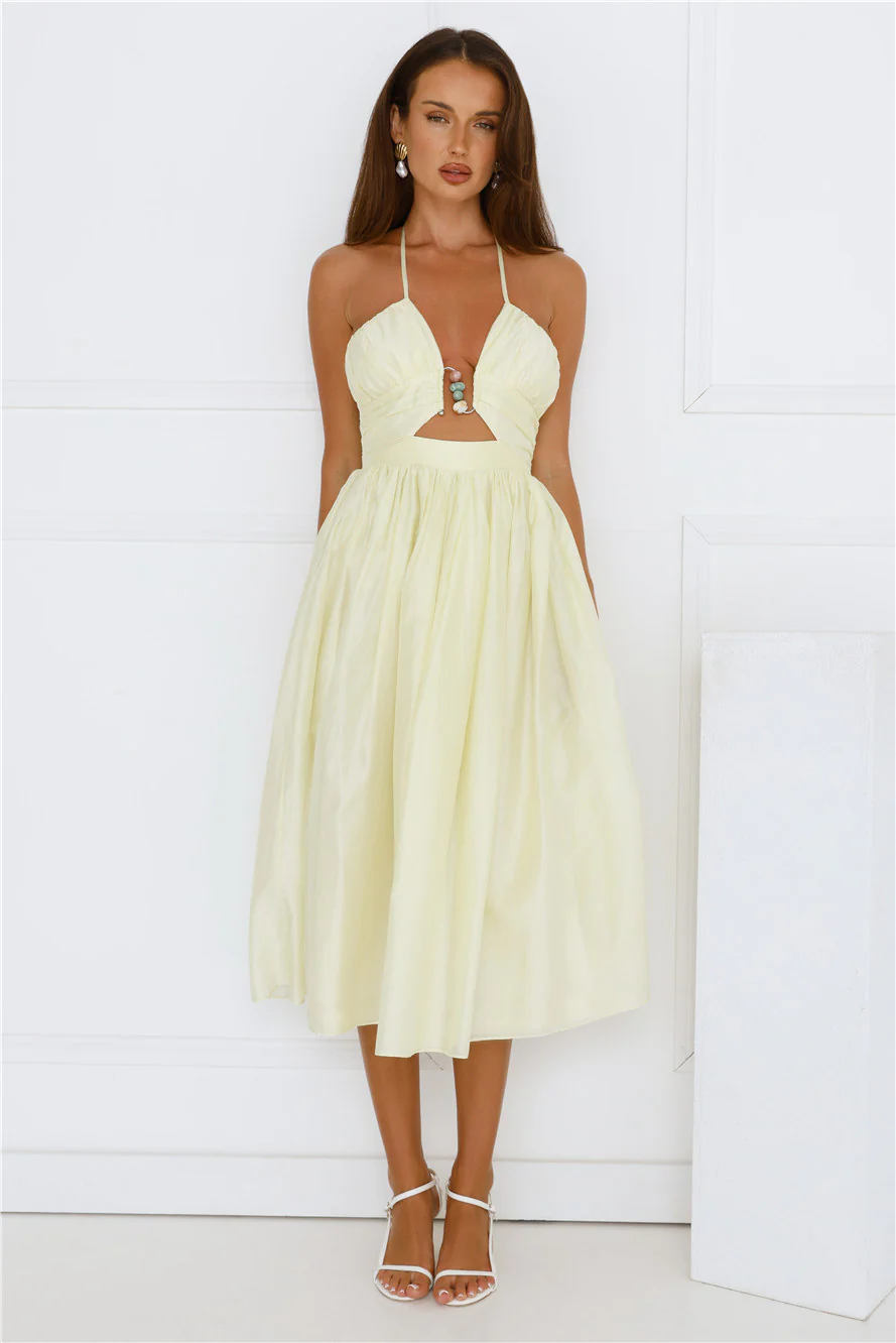 Seabreeze Dreamer Halter Midi Dress Yellow