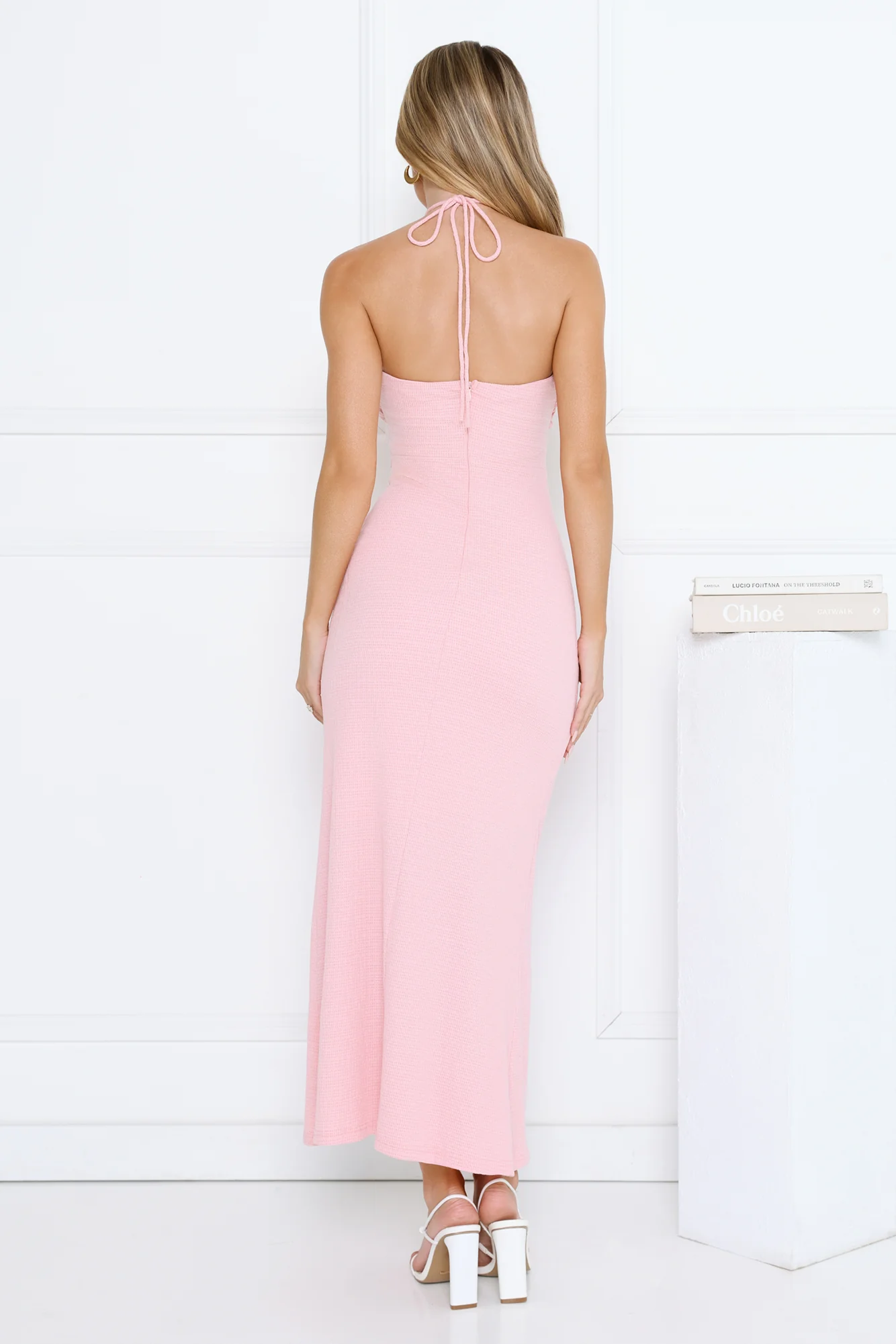 Minimalist Luxe Halter Midi Dress Pink