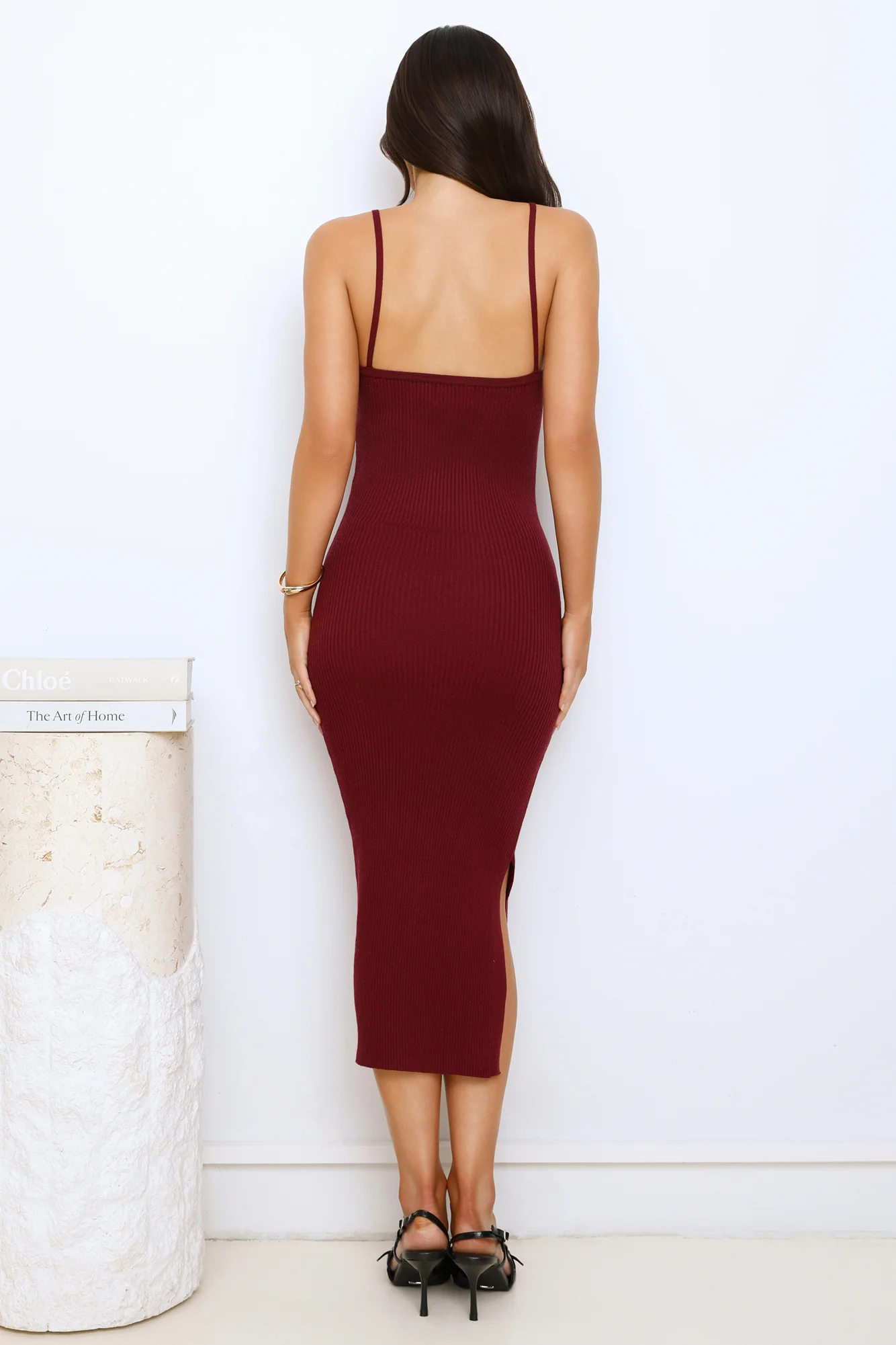 Simply Polished Ribbed Midi Dress Wine