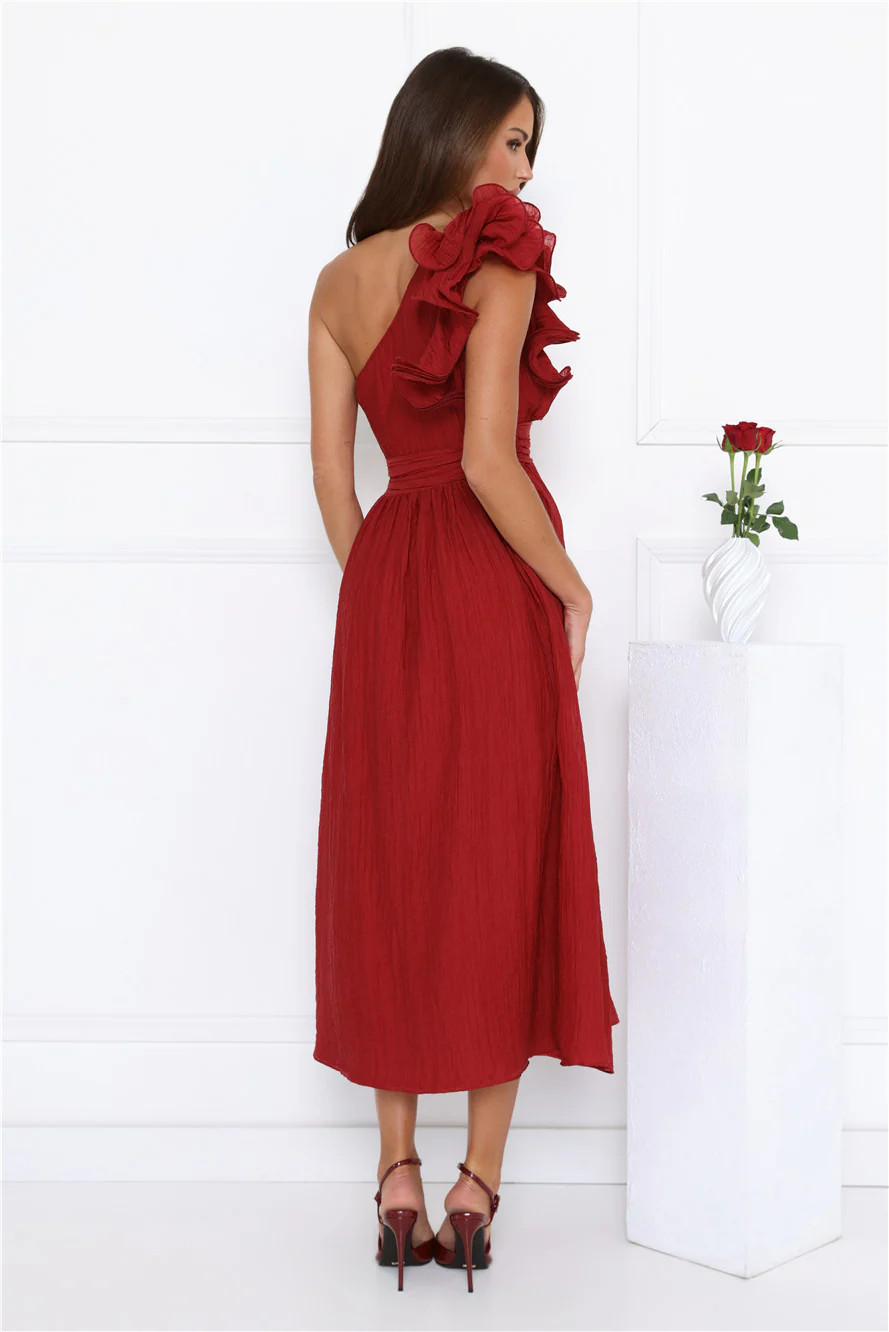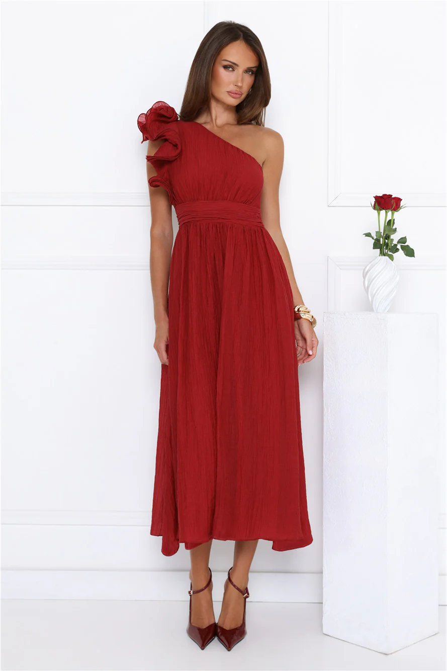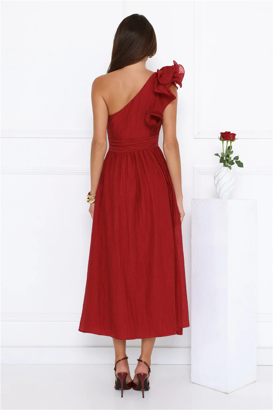 Find Out One Shoulder Midi Dress Wine