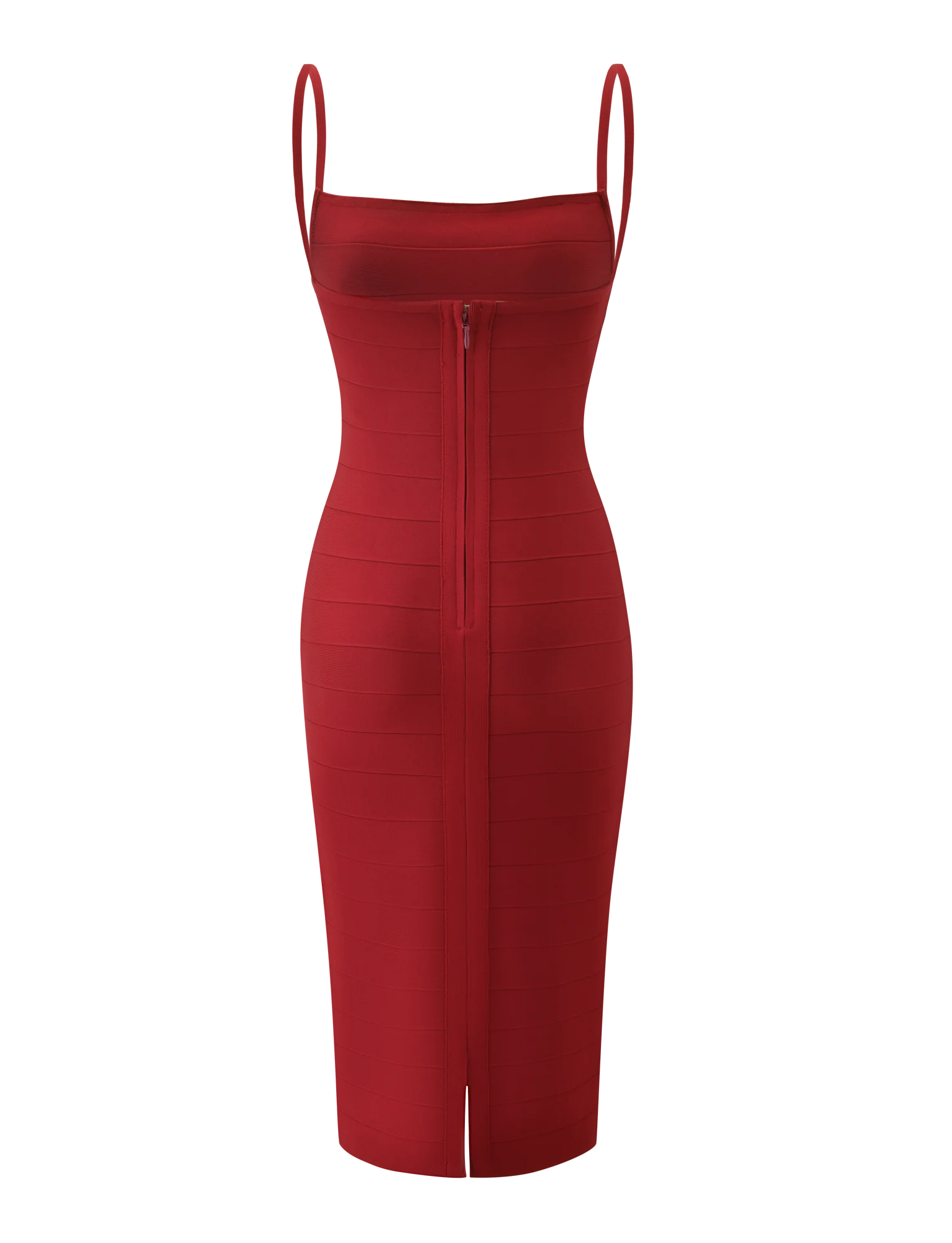 MIDORI MIDI BANDAGE DRESS - CHERRY