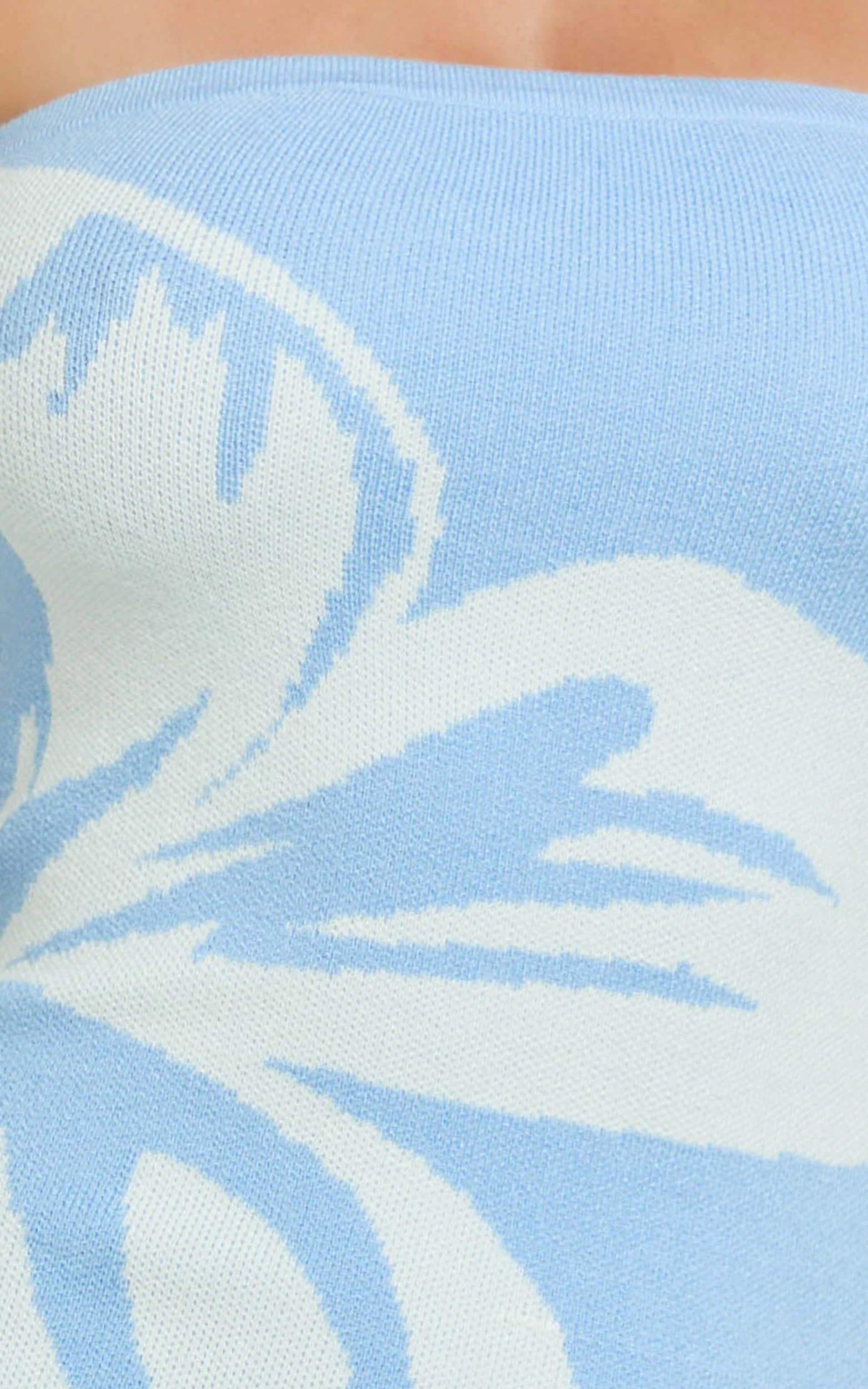 Amy Midi Dress - Knit Strapless Column Dress in Intarsia Print