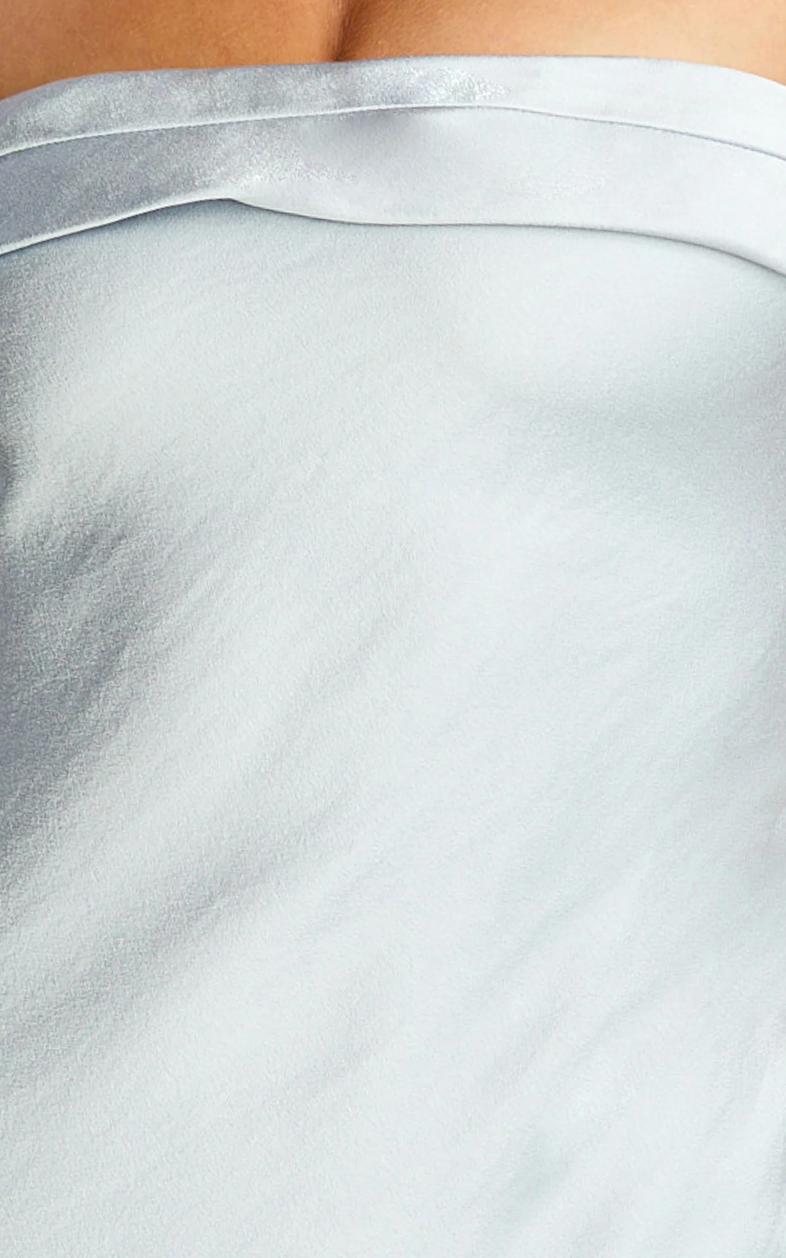 Zaya Midi Dress - Strapless Satin Slip Dress in Pale Blue