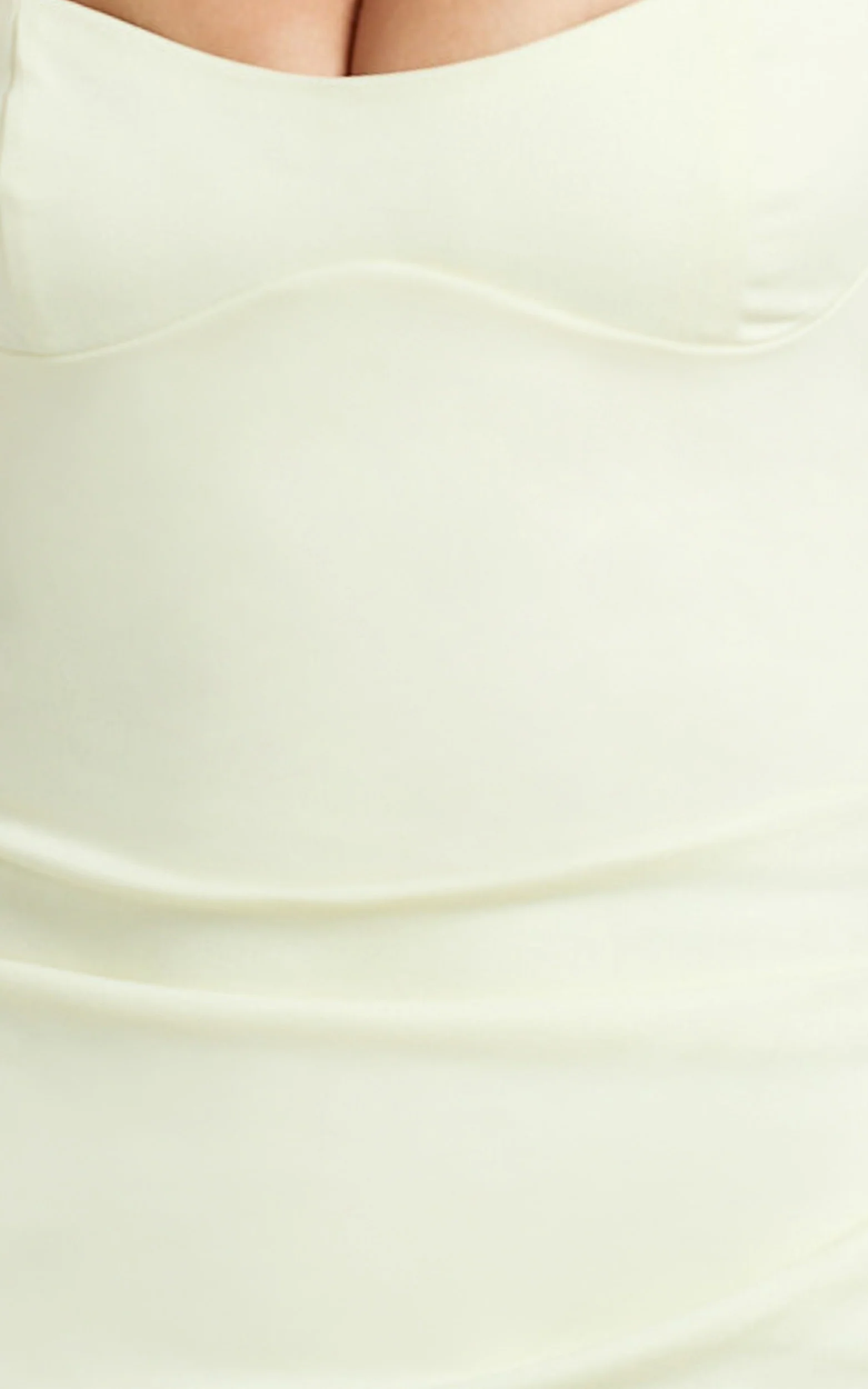 Khalani Midi Dress - Deep V Neck Satin Slip Dress in Butter Yellow