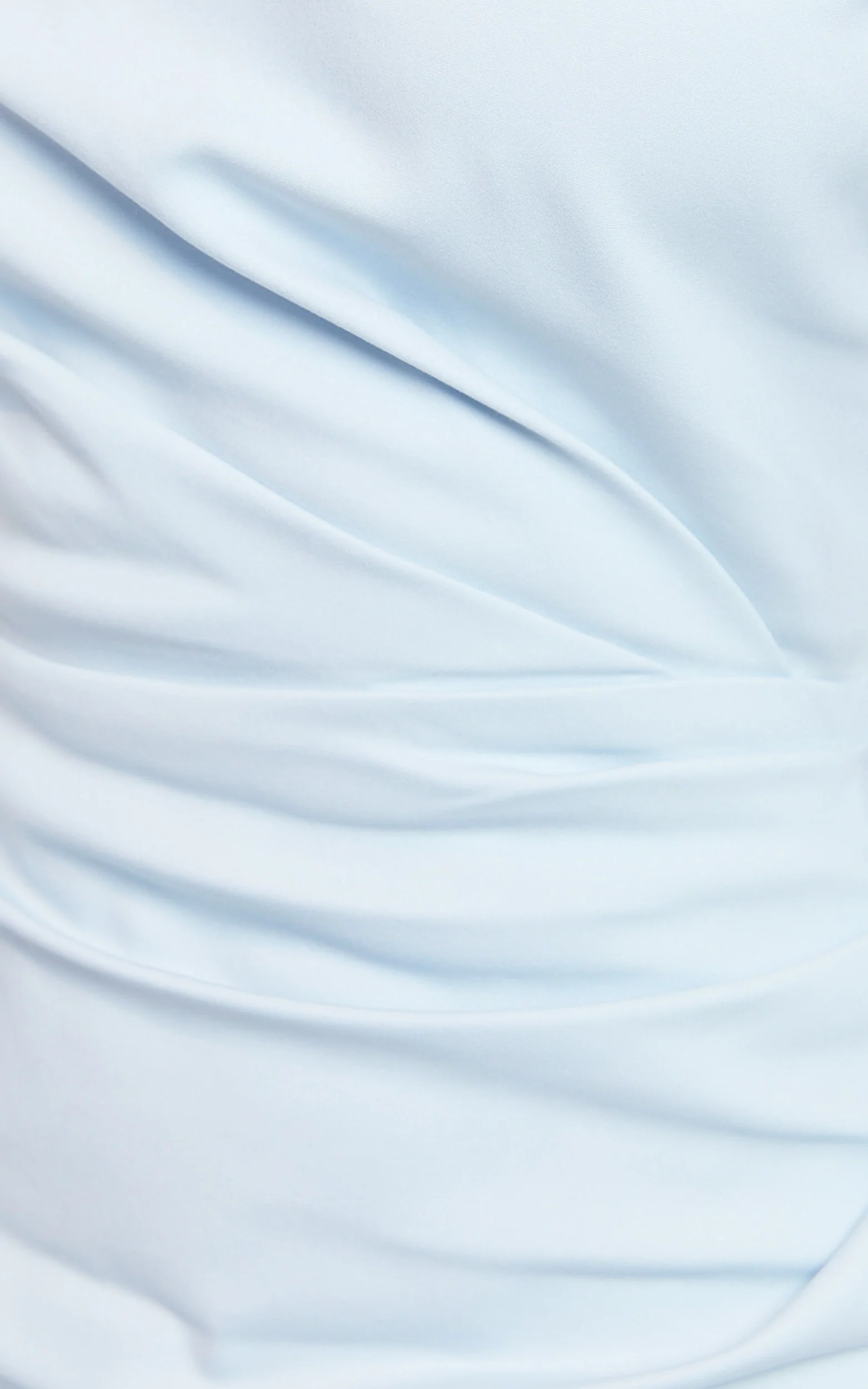 Benita Midi Dress - Scoop Neck Ruched Fitted Dress in Blue
