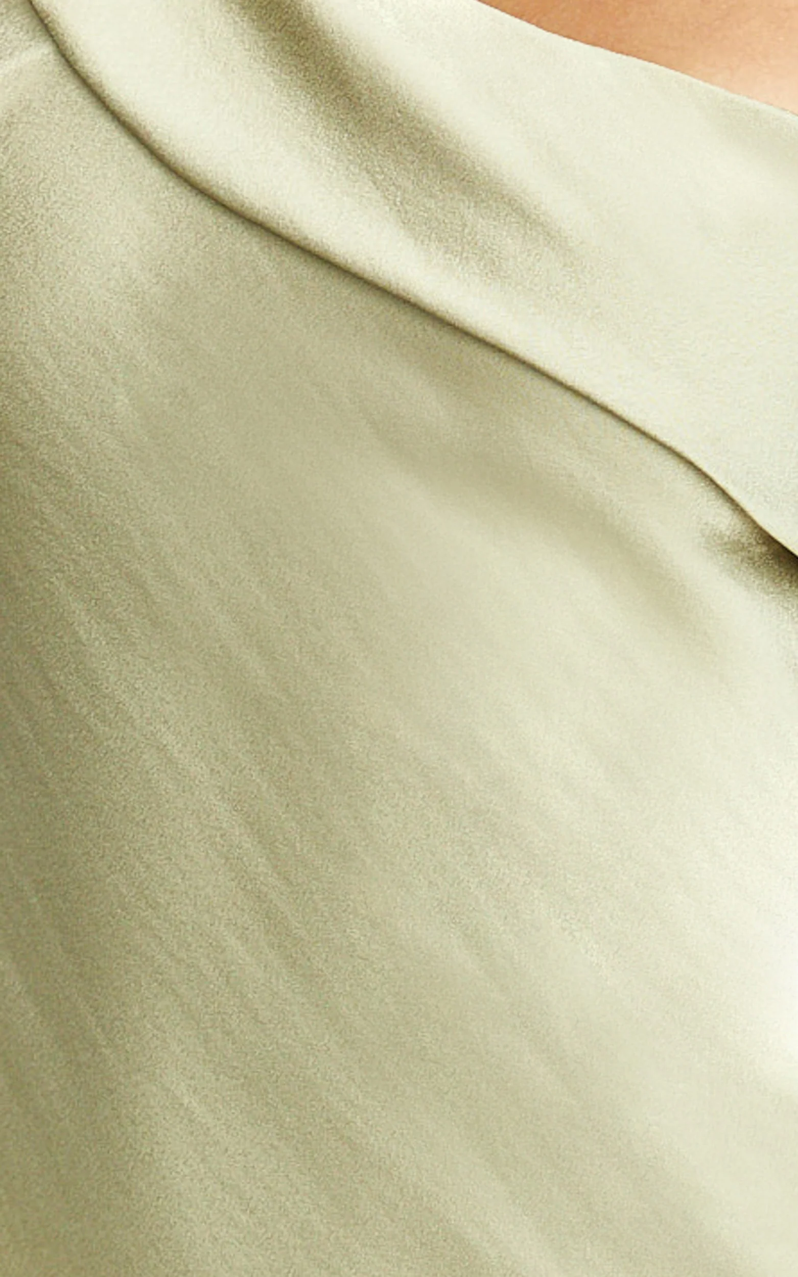 Calix Midi Dress - One Shoulder Slip Dress in Light Olive