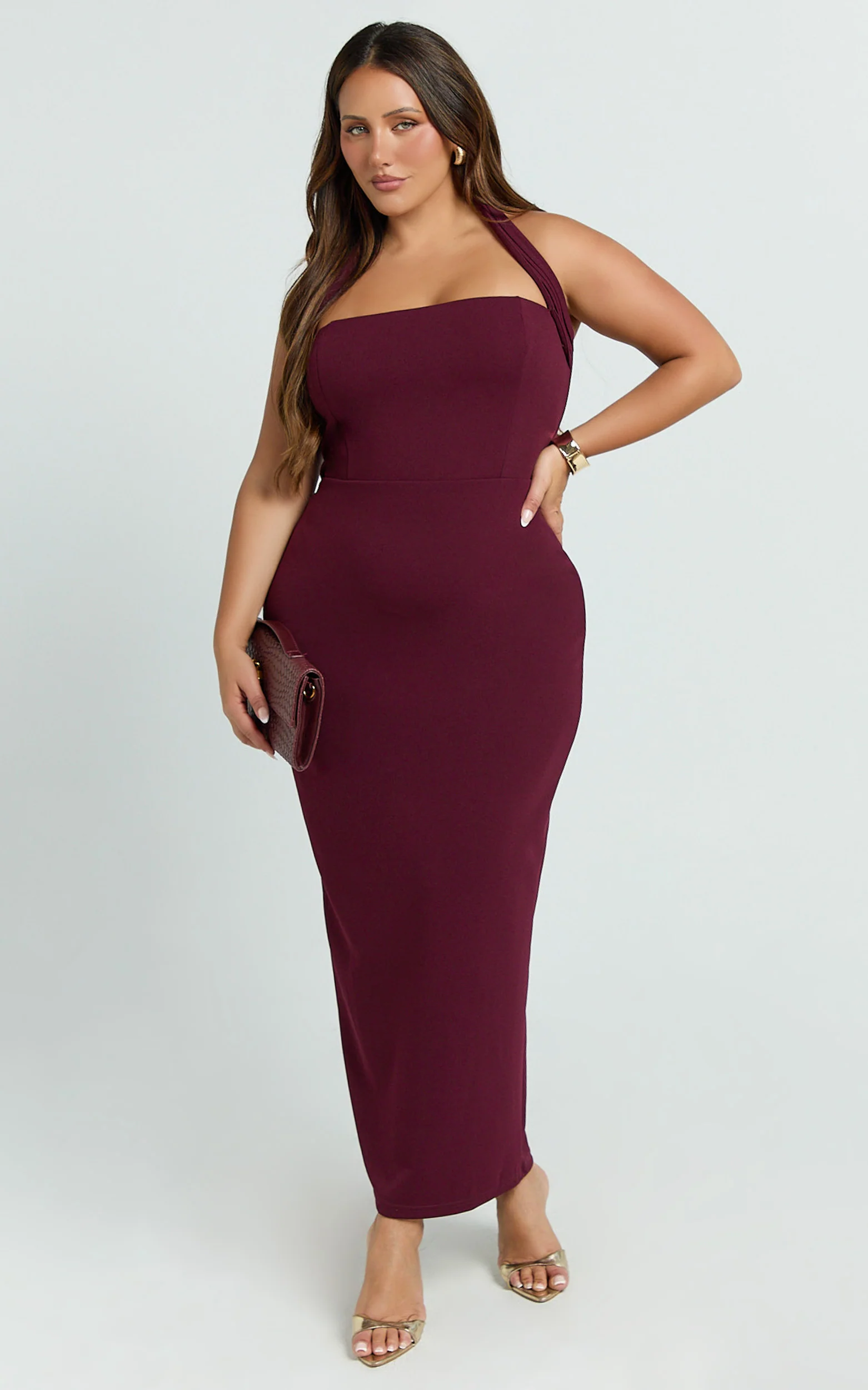 Salome Midi Dress - Halter Neck Column Dress in Wine
