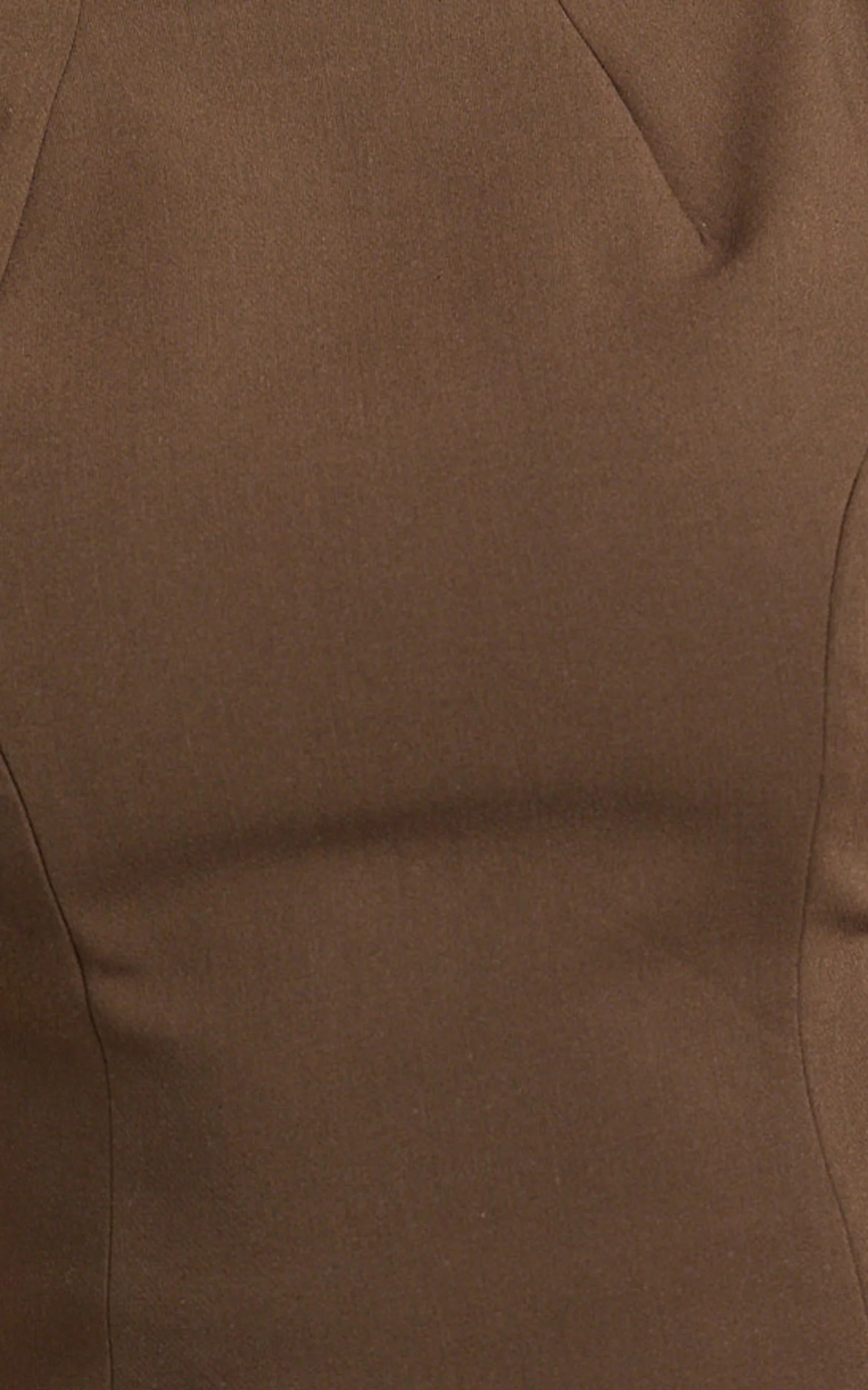 Langley Mini Dress - Sleeveless High Neck Faux Wrap Tulip Dress in Brown