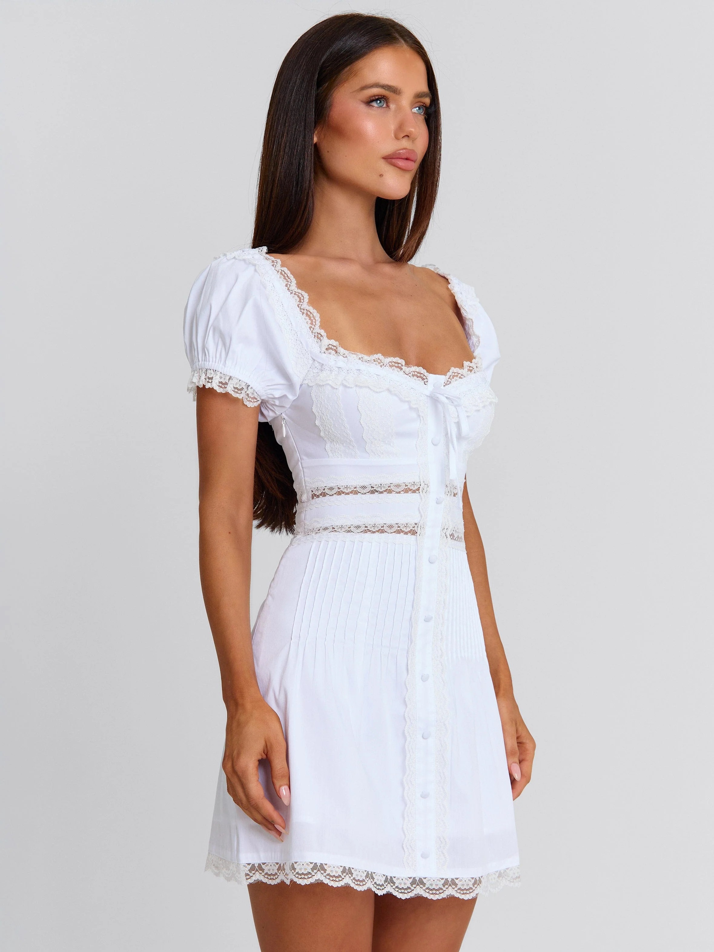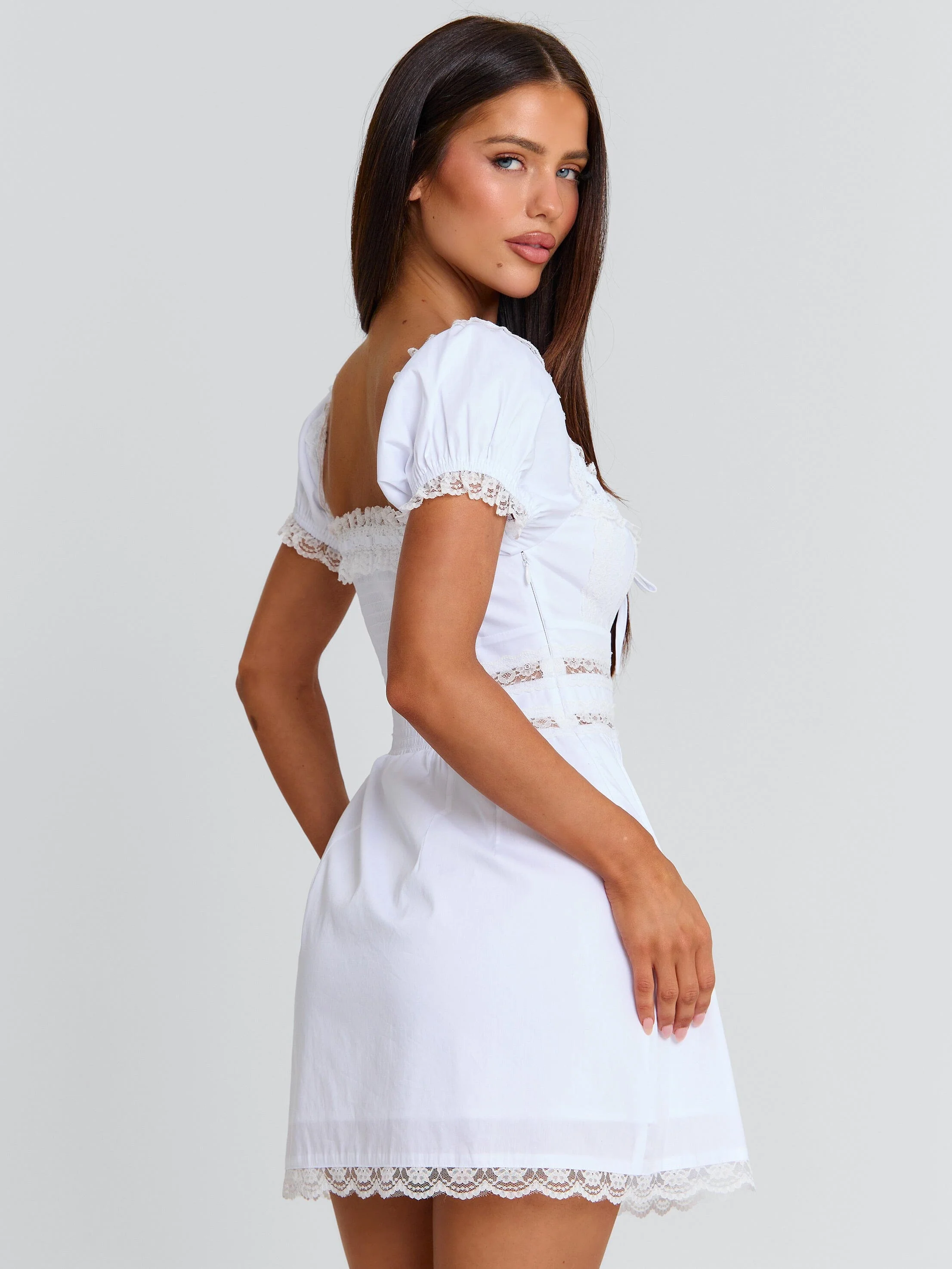 Alyce Mini Dress - Long Sleeve One Shoulder Dress in Off White