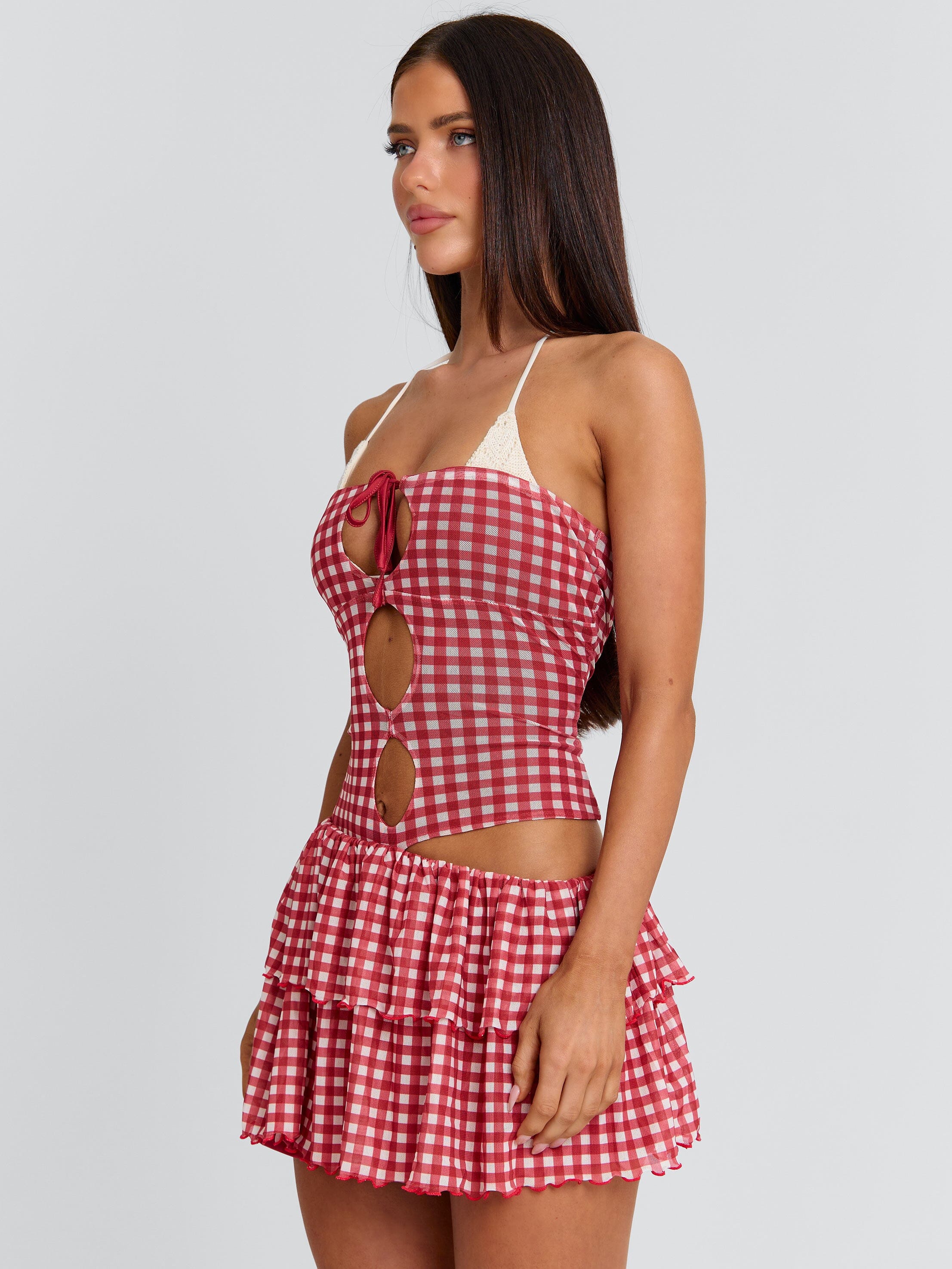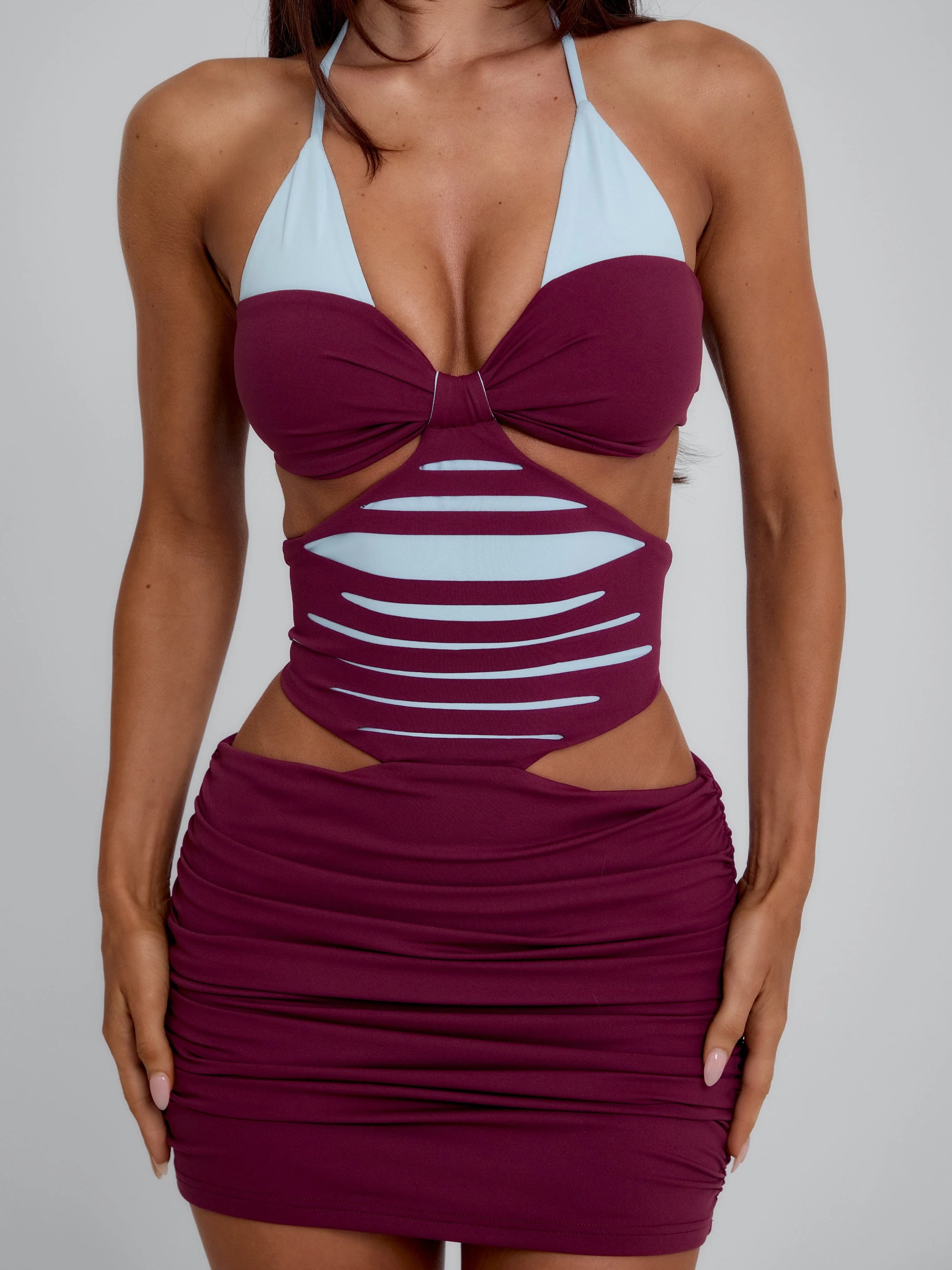 Dante Mini Dress - Halter Neck Tie Tulip Skirt Dress in Pink