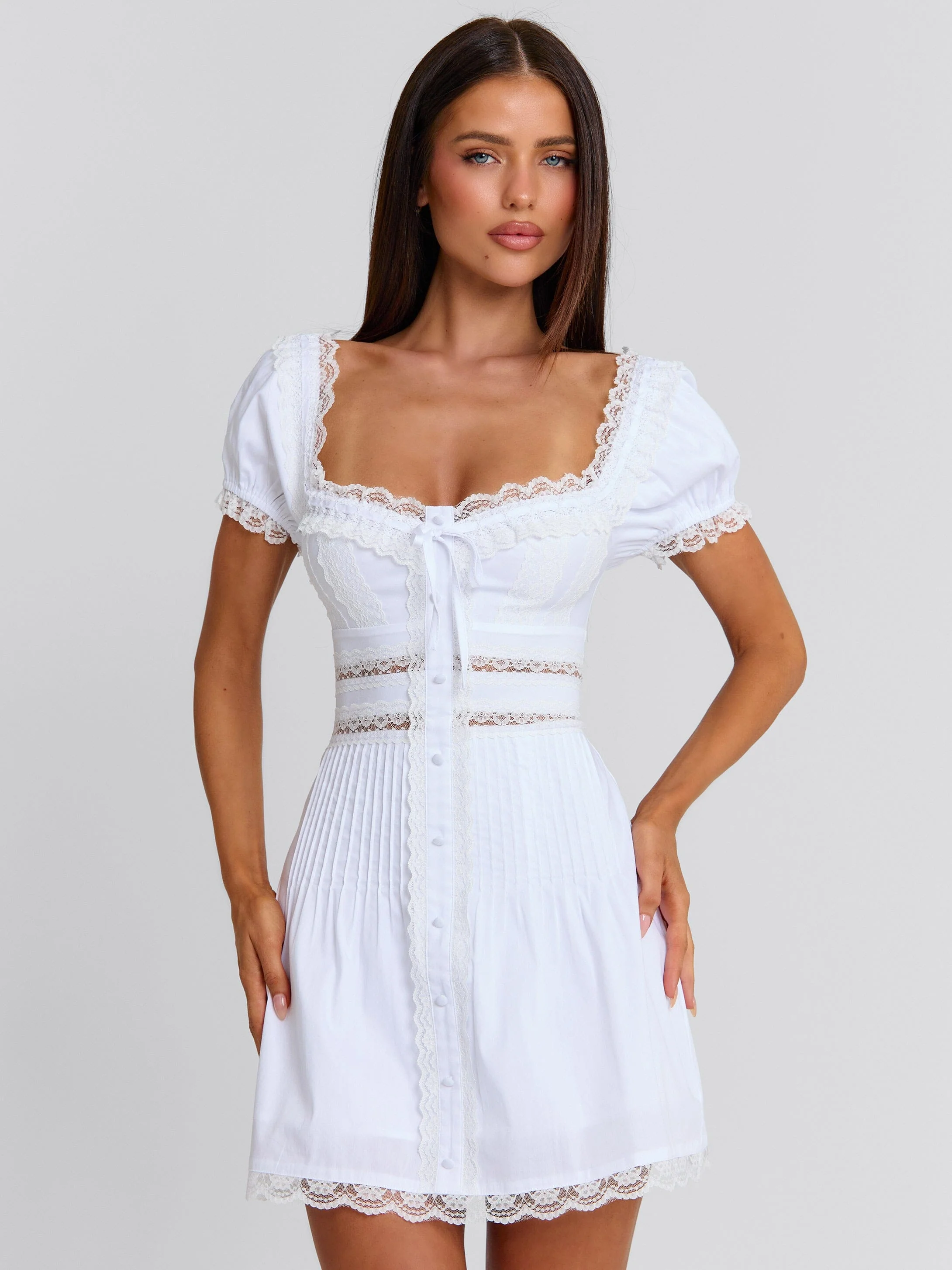 Catharine Mini Dress - Strapless A Line Dress in Pink