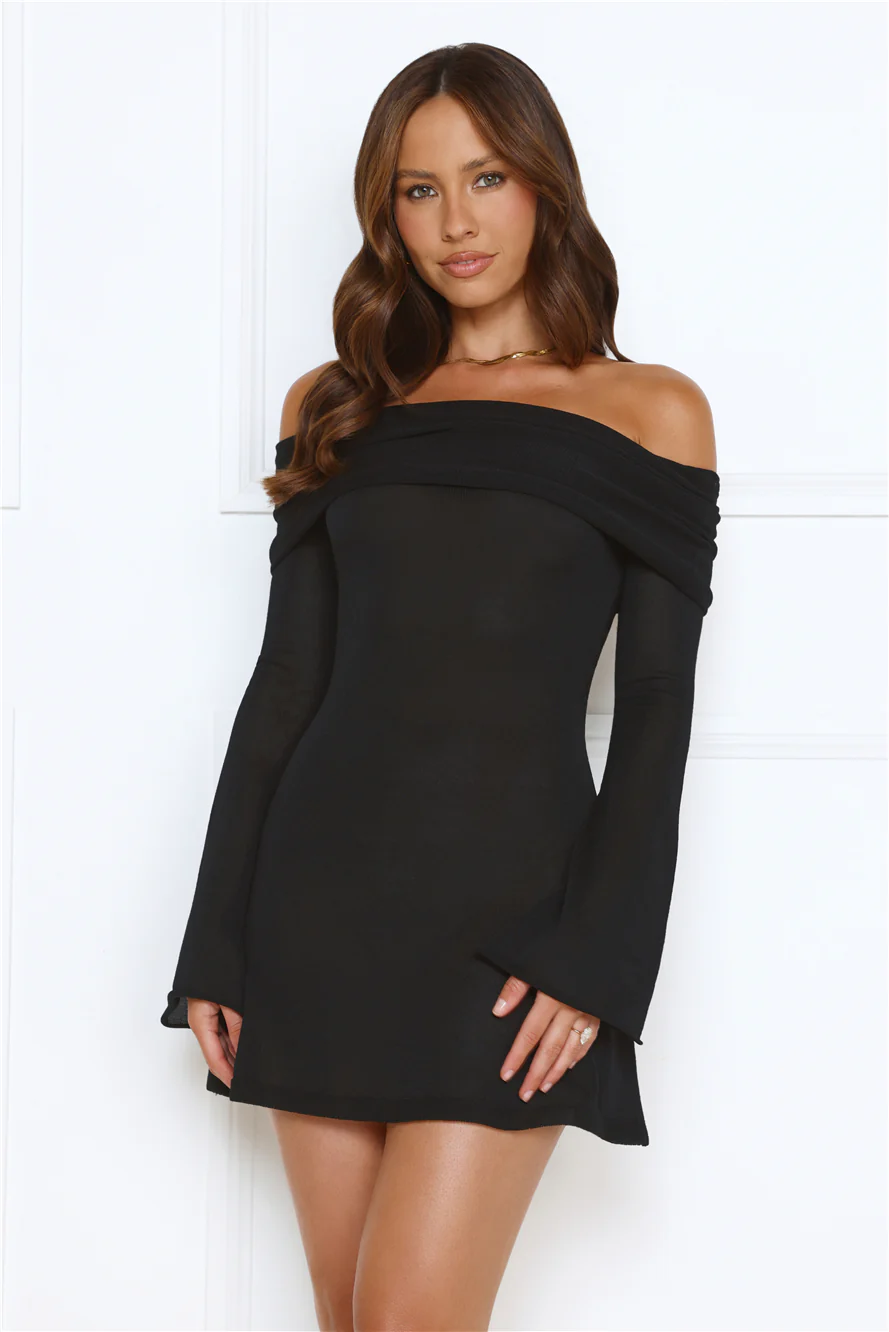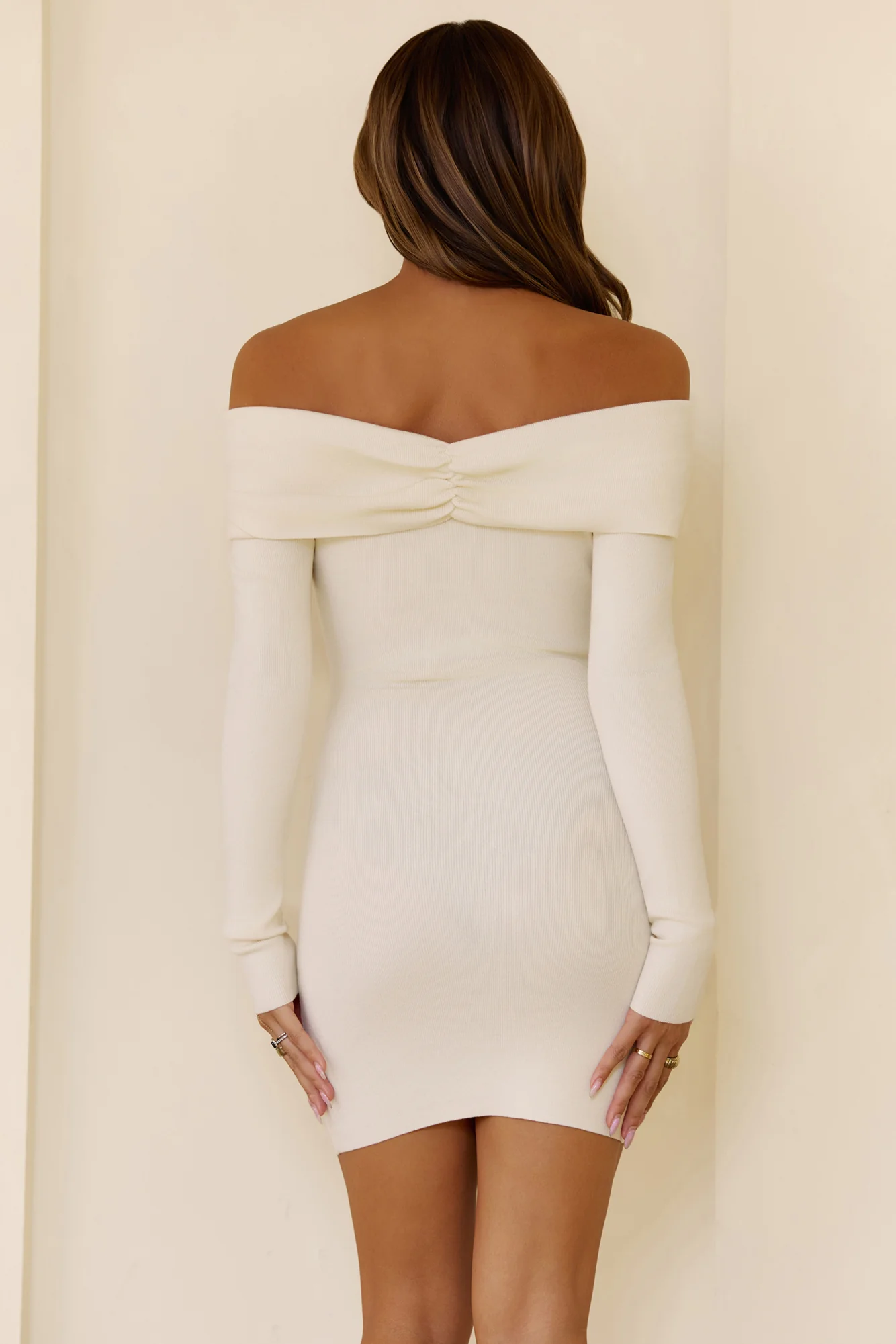 Night Out Now Ribbed Off Shoulder Mini Dress Cream
