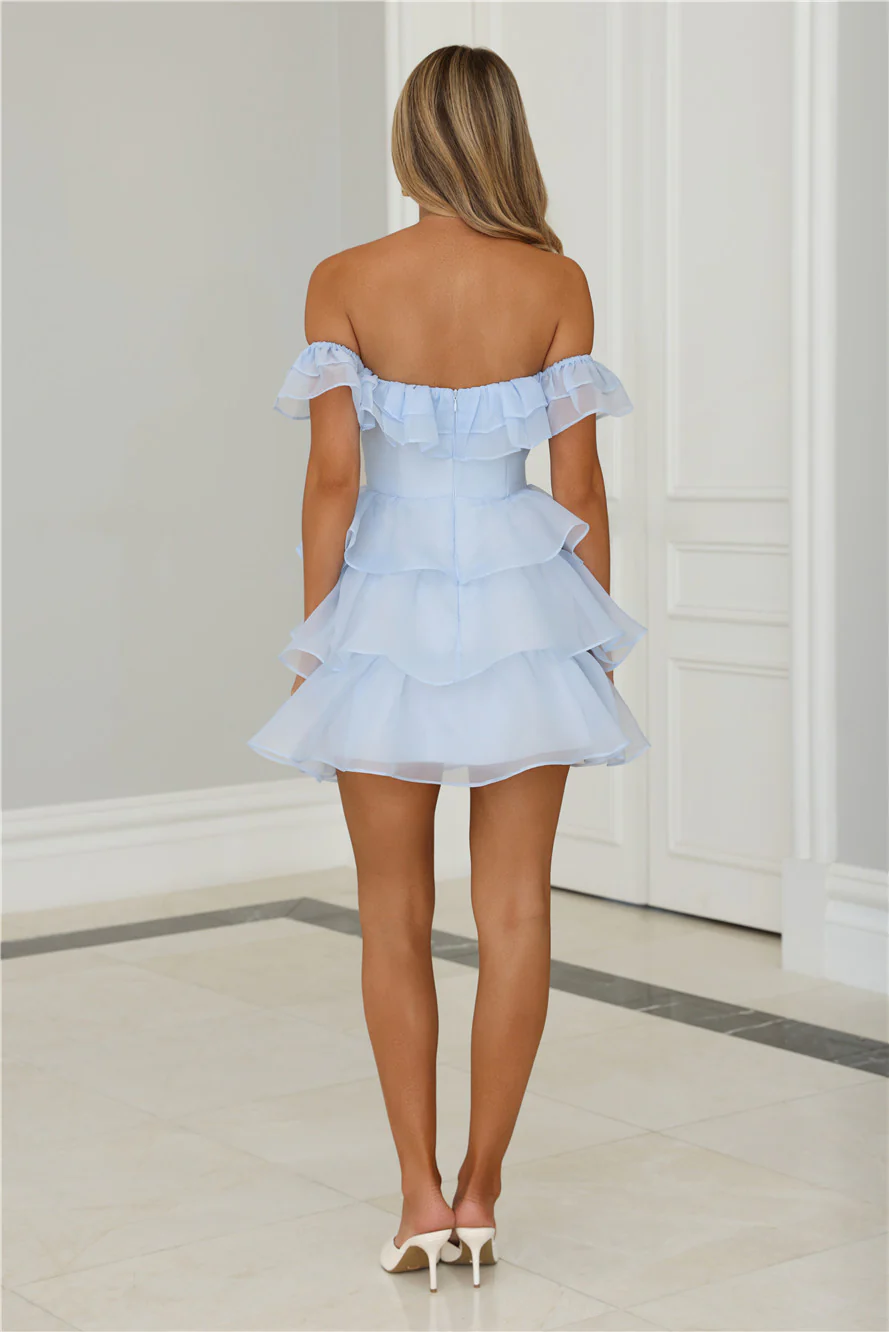 Fizz Fun Off Shoulder Mini Dress Blue