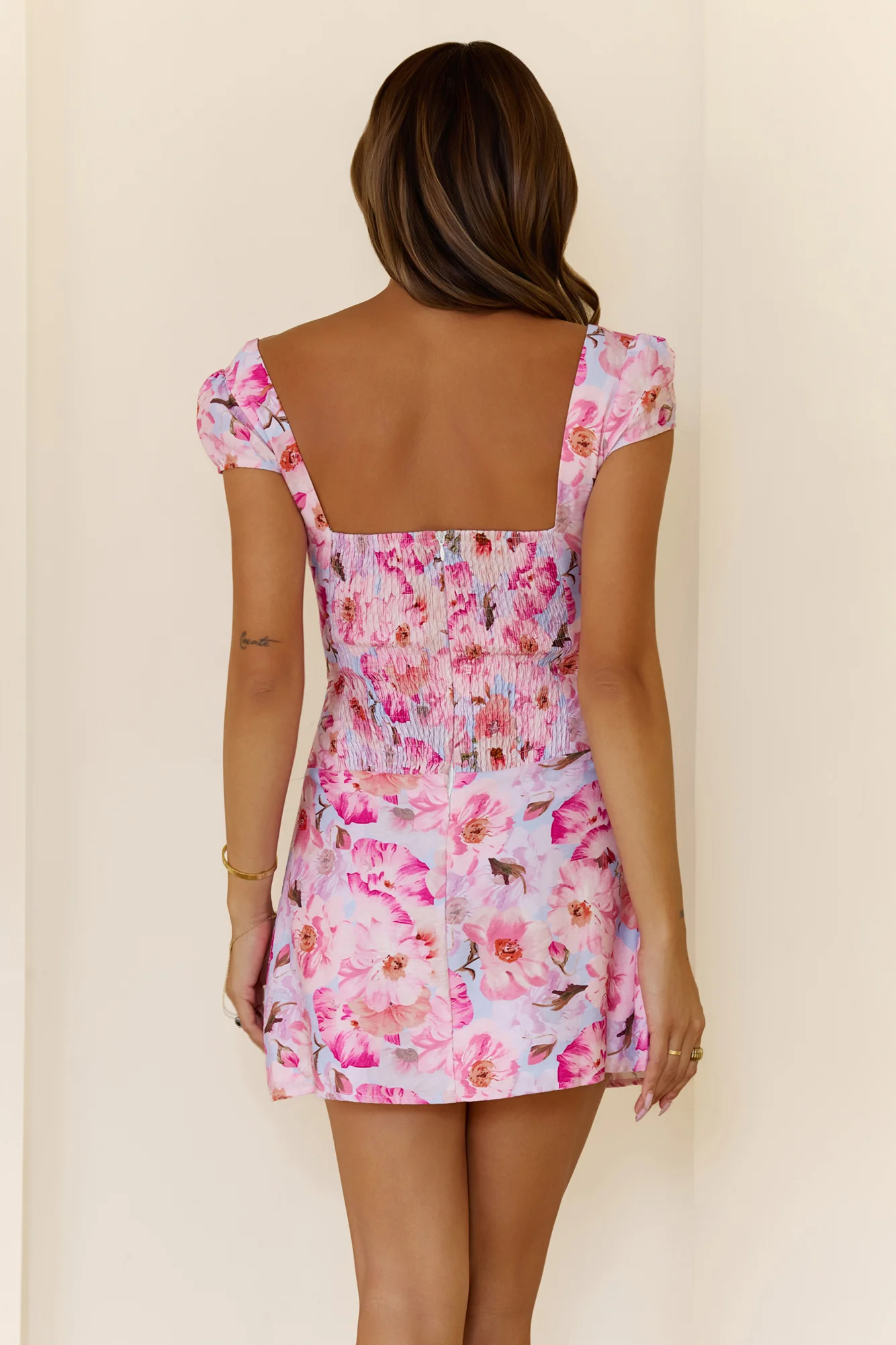 Dreamy Floral Embroidered Mesh Mini Dress Blue