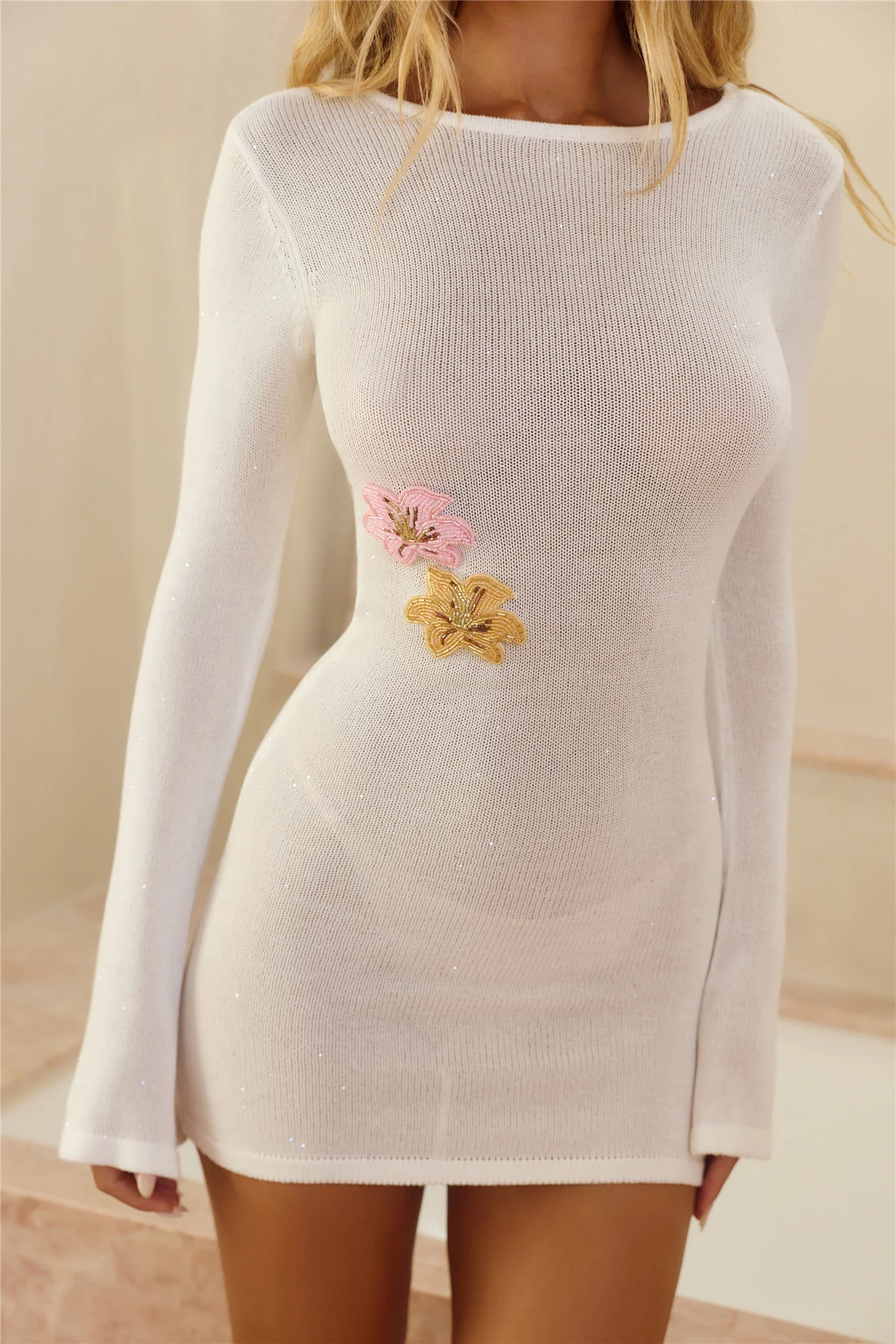 Sun-Kissed Evenings Knit Long Sleeve Mini Dress White