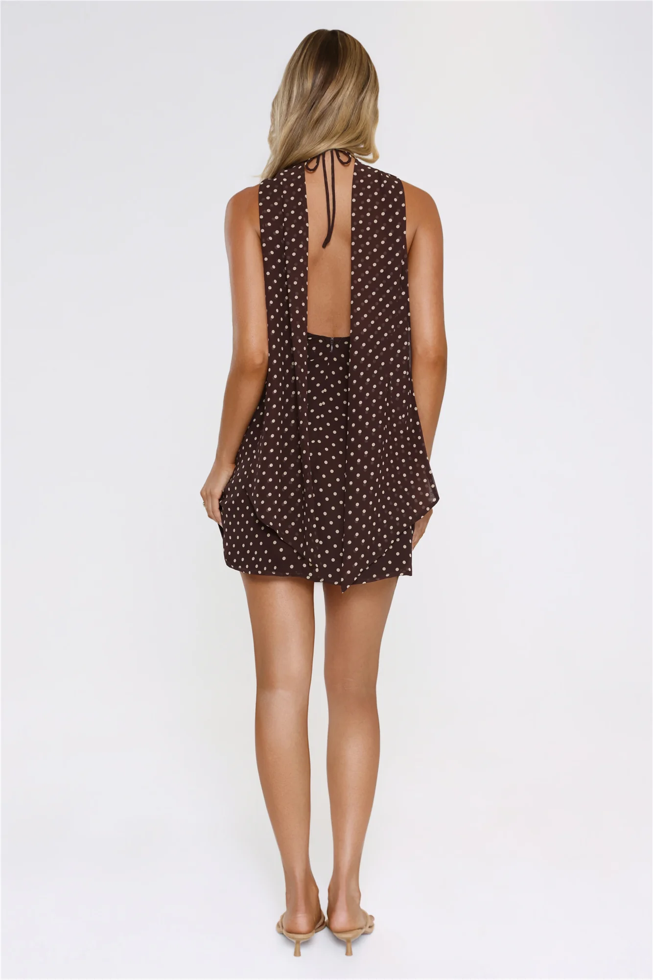 Chic Babe Polka Dot Halter Mini Dress Brown