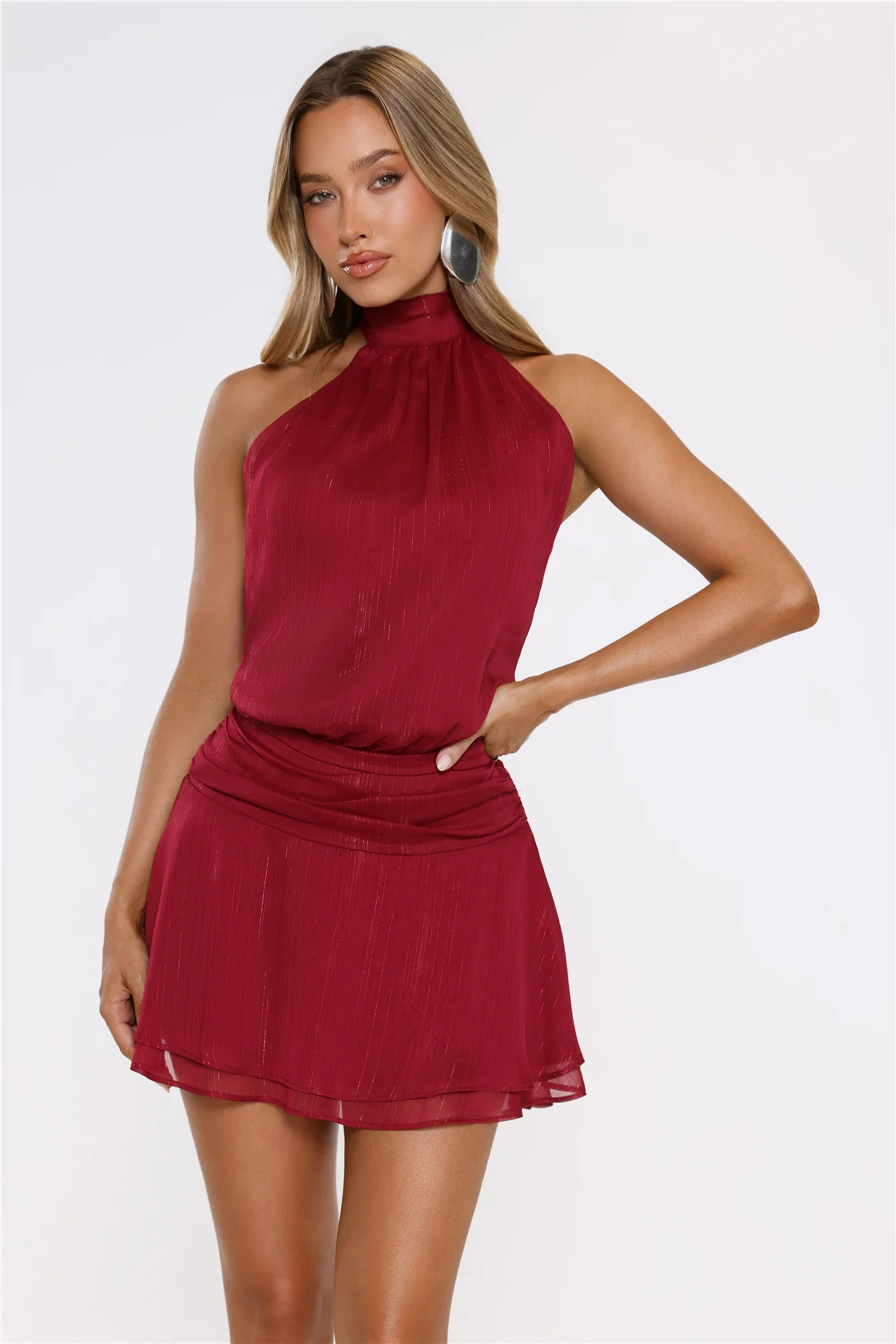 Glow Chaser Lace Mesh One Shoulder Mini Dress Brown